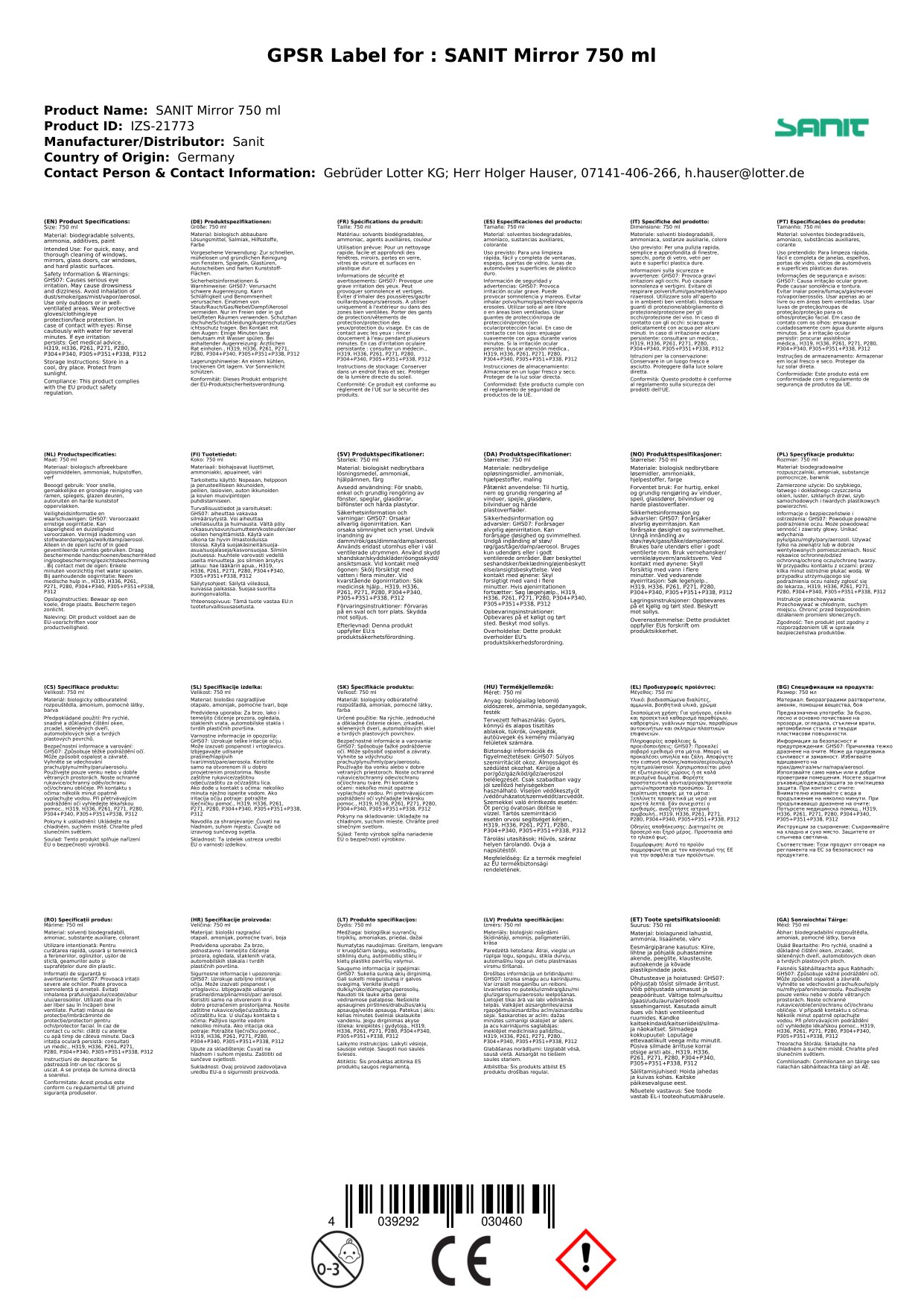 Glanadh scátháin, Spraeire scátháin, Glanadh scátháin seomra folctha, 750 ml