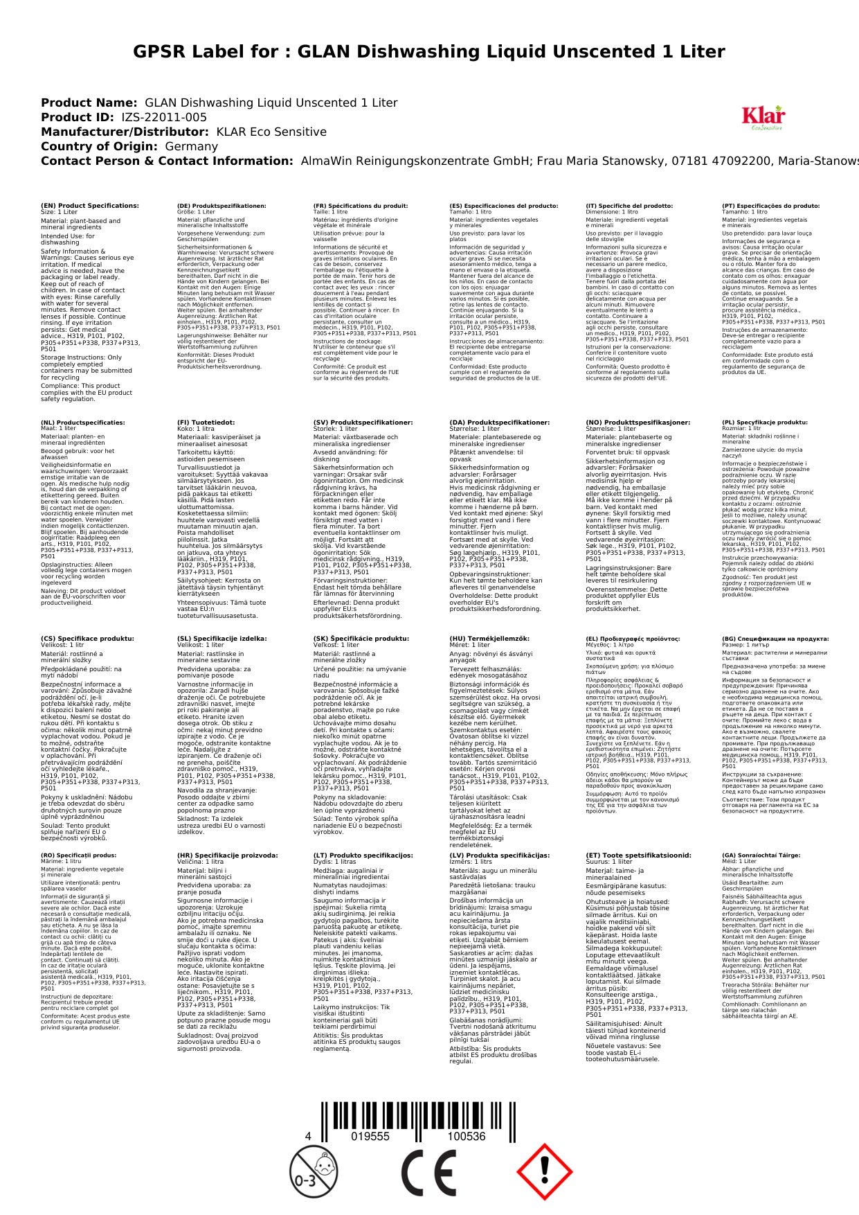 | Brand: | KLAR Eco Sensitive |