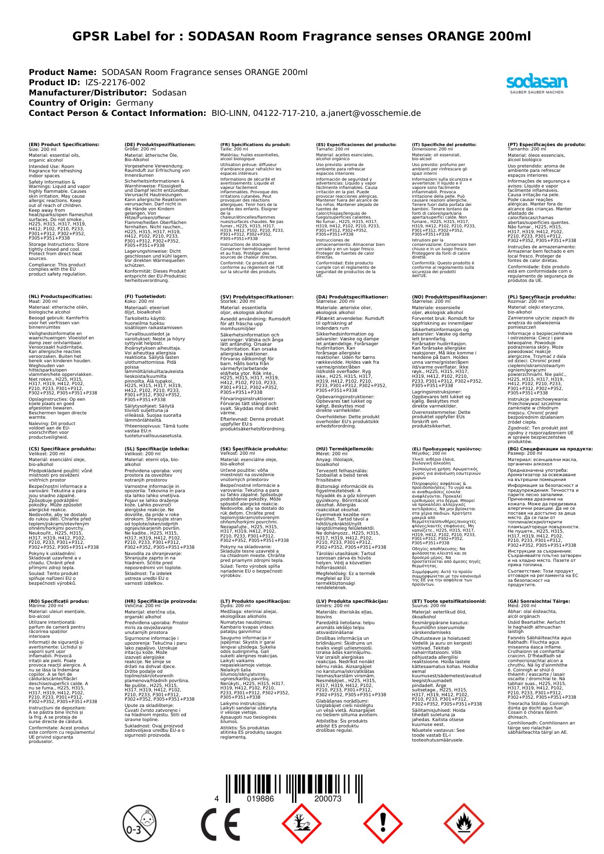 Tá an athbheochanóir aeir seo déanta le hola oráiste nádúrtha, rud a chinntíonn cumhrán úr agus athnuachana. Tá sé saor ó cheimiceáin chrua agus sintéisigh, rud a fhágann go bhfuil sé sábháilte le húsáid timpeall peataí agus leanaí. Is é an méid 200ml, atá oiriúnach chun seomraí beaga agus meánmhéide a chumhrán. Cinntíonn an pacáistiú in-athchúrsáilte go bhfuil sé cairdiúil don timpeallacht.