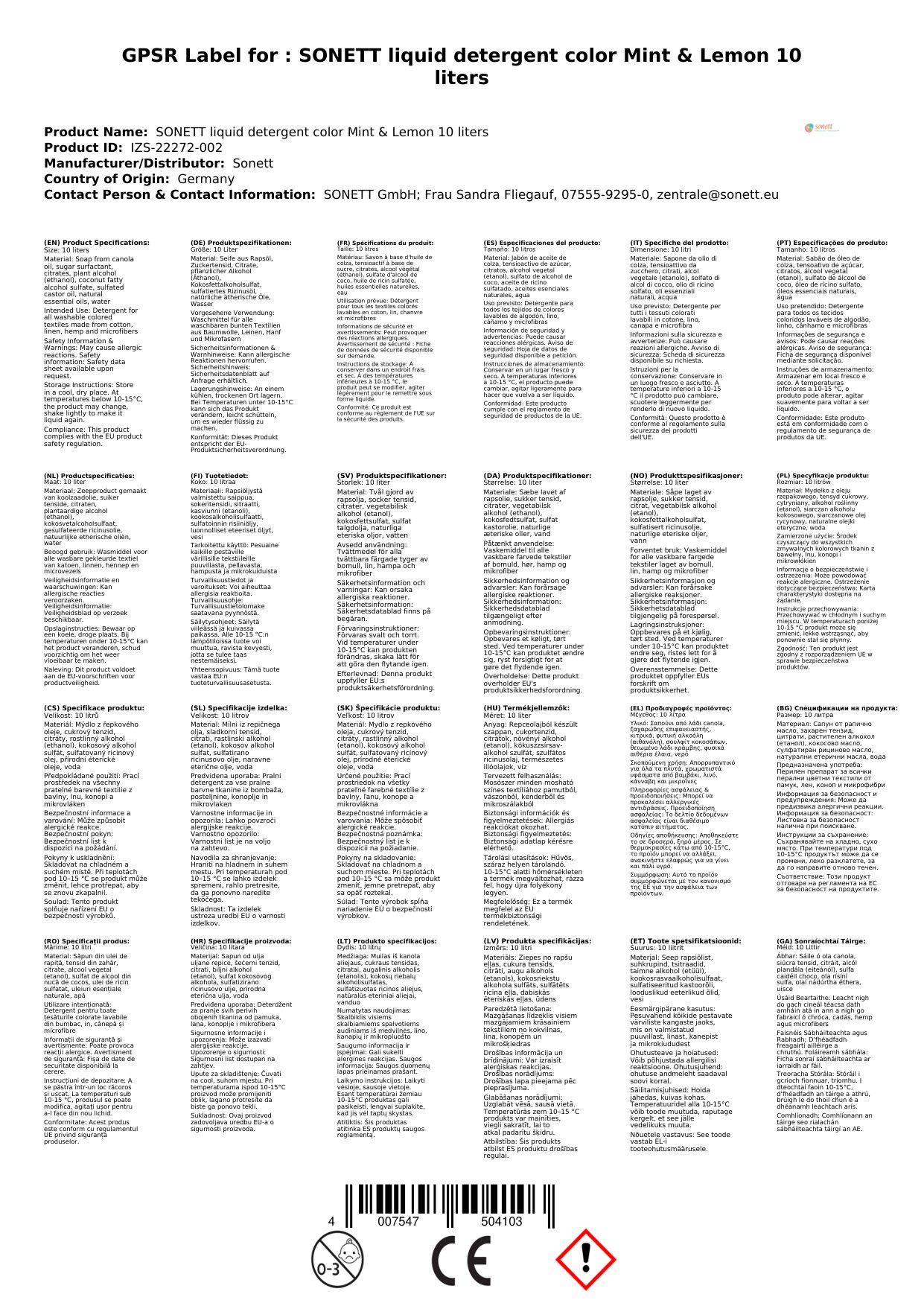 Ag lorg glantóir datha éifeachtach atá cairdiúil don chomhshaol? Tá Glanadh Datha Sonett 10 Lítear foirfe chun éadaí daite a ní go glan agus go héifeachtach. Le boladh úr líomanáide agus mint, fágfaidh sé do chuid éadaí ag boladh go hiontach. Bain triail as inniu agus feic an difríocht!
