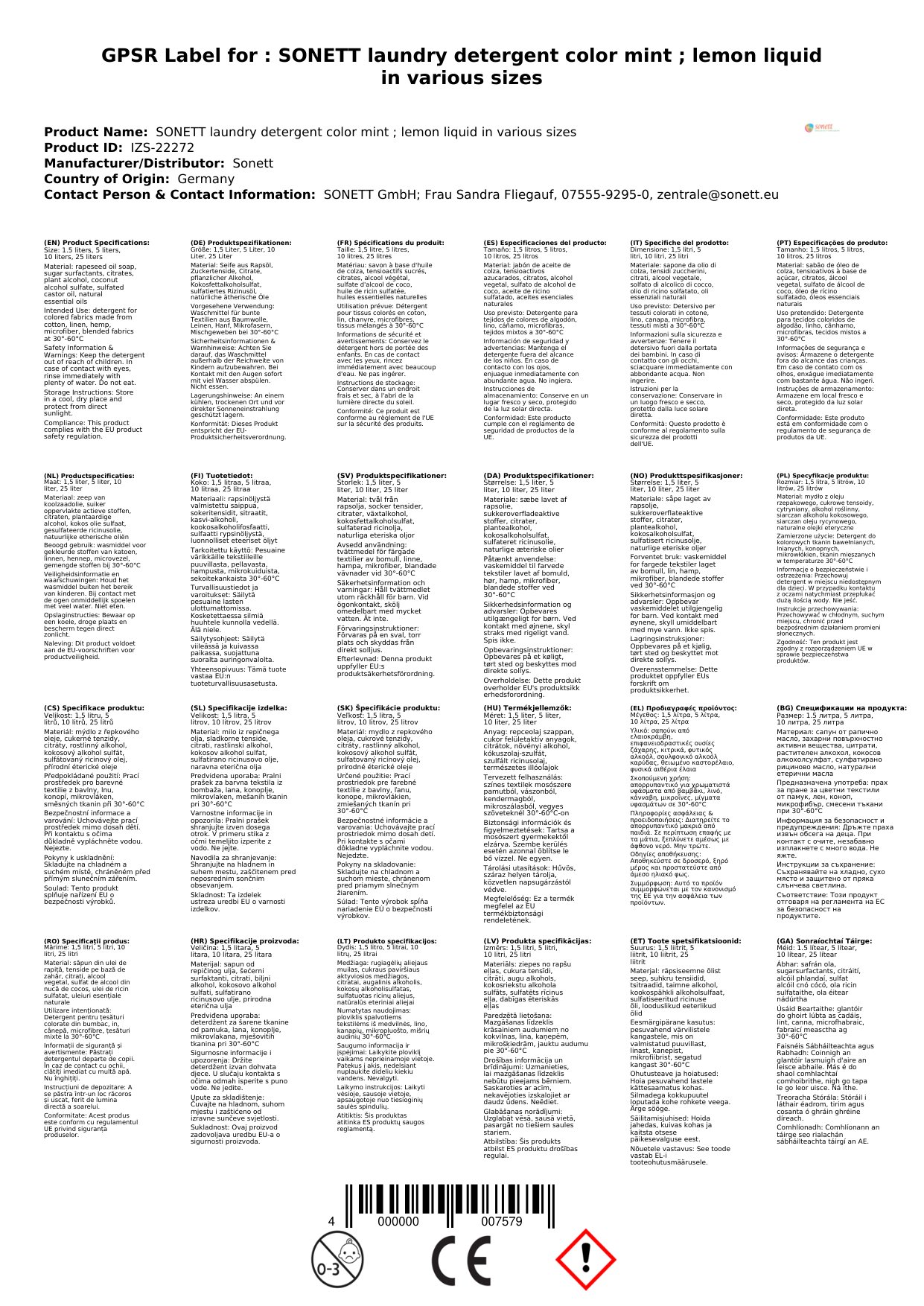 Cinntíonn ár nglantach dathanna níochán éifeachtach agus cineálta. Tá sé bunaithe ar chomhábhair nádúrtha agus orgánacha, rud a chiallaíonn go bhfuil sé sábháilte do do chraiceann agus don timpeallacht. Tá an cumhra mint agus líomóide nádúrtha, ag fágáil do chuid éadaí ag boladh úr agus glan. Cén fáth go bhfuil sé seo tábhachtach duit: Is féidir leat a bheith cinnte go bhfuil tú ag úsáid táirge atá go maith duit féin agus don phláinéad.