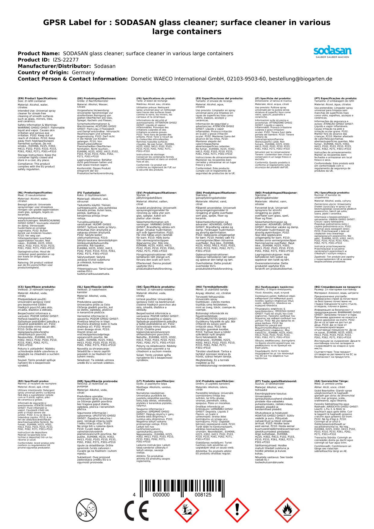 Fógra: H411: Tocsaineach don saol uisceach le héifeachtaí fadtéarmacha. H319: Is cúis le greannú tromchúiseach súl. H225: Leacht an-inlasta agus gal.