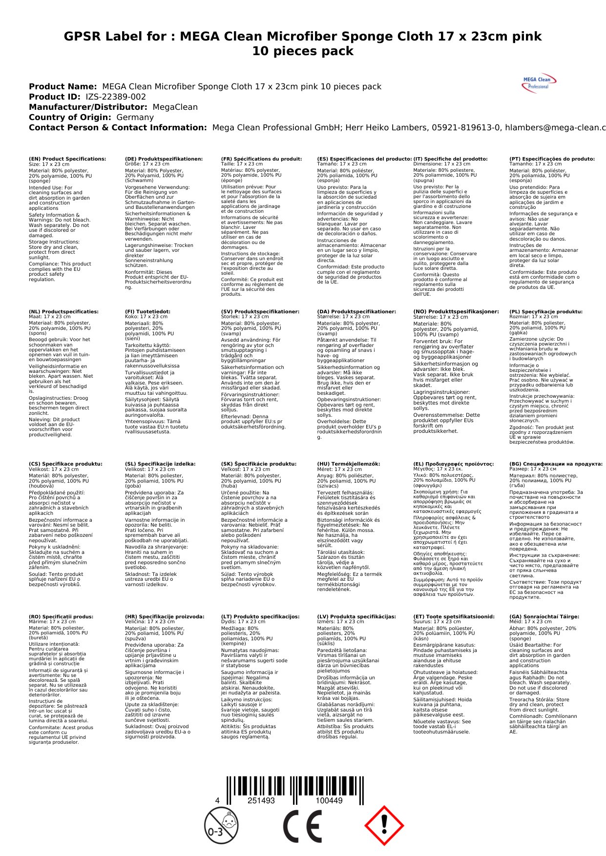 - Méid Áisiúil: Tá an méid 17 x 23 cm foirfe chun dromchlaí beaga agus móra a ghlanadh.
