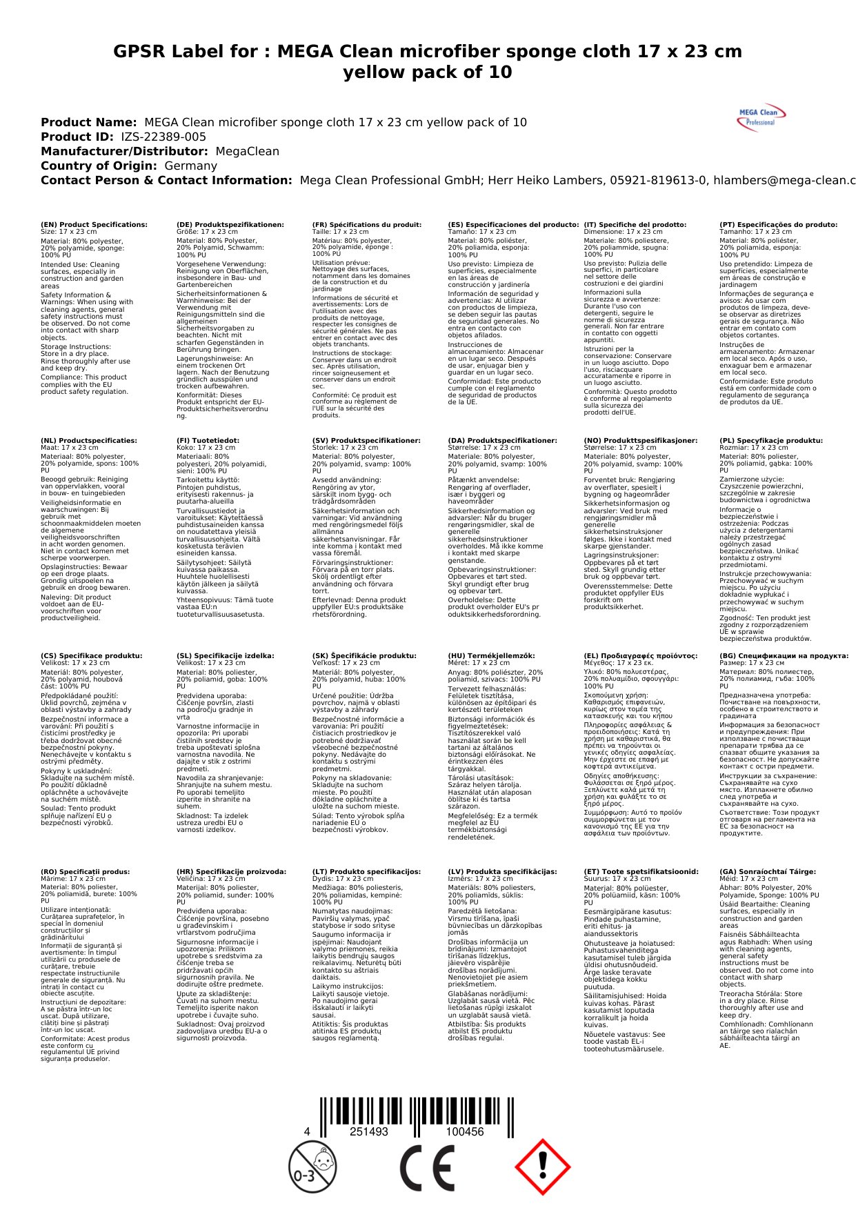 Cuir ceist chun níos mó a fhoghlaim faoin táirgeÉadach Spúinse Micrea-Snáithín, 10 n-Éadach Glantacháin, 17 x 23cm buí, Éadach Glantacháin