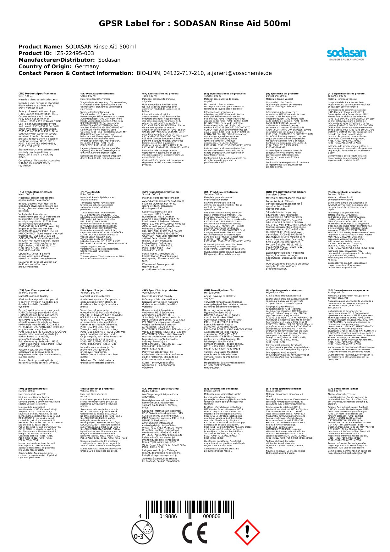 Rabhadh: Aicmiú de réir VO 1272/2008: H319 - Gortaíonn sé an súl go dona.