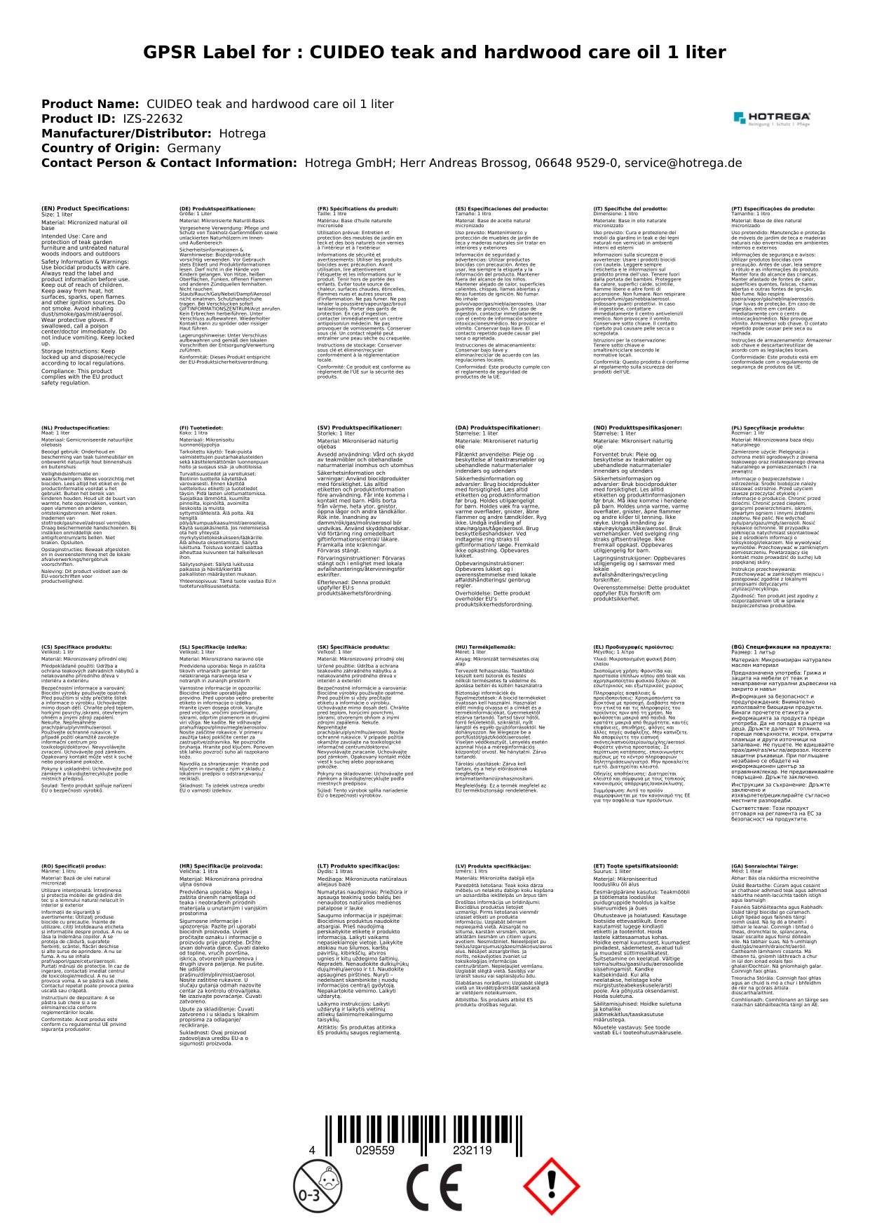 Cuir ceist chun níos mó a fhoghlaim faoin táirgeOla Teak 1 L, Ola adhmaid crua, Cúram teak