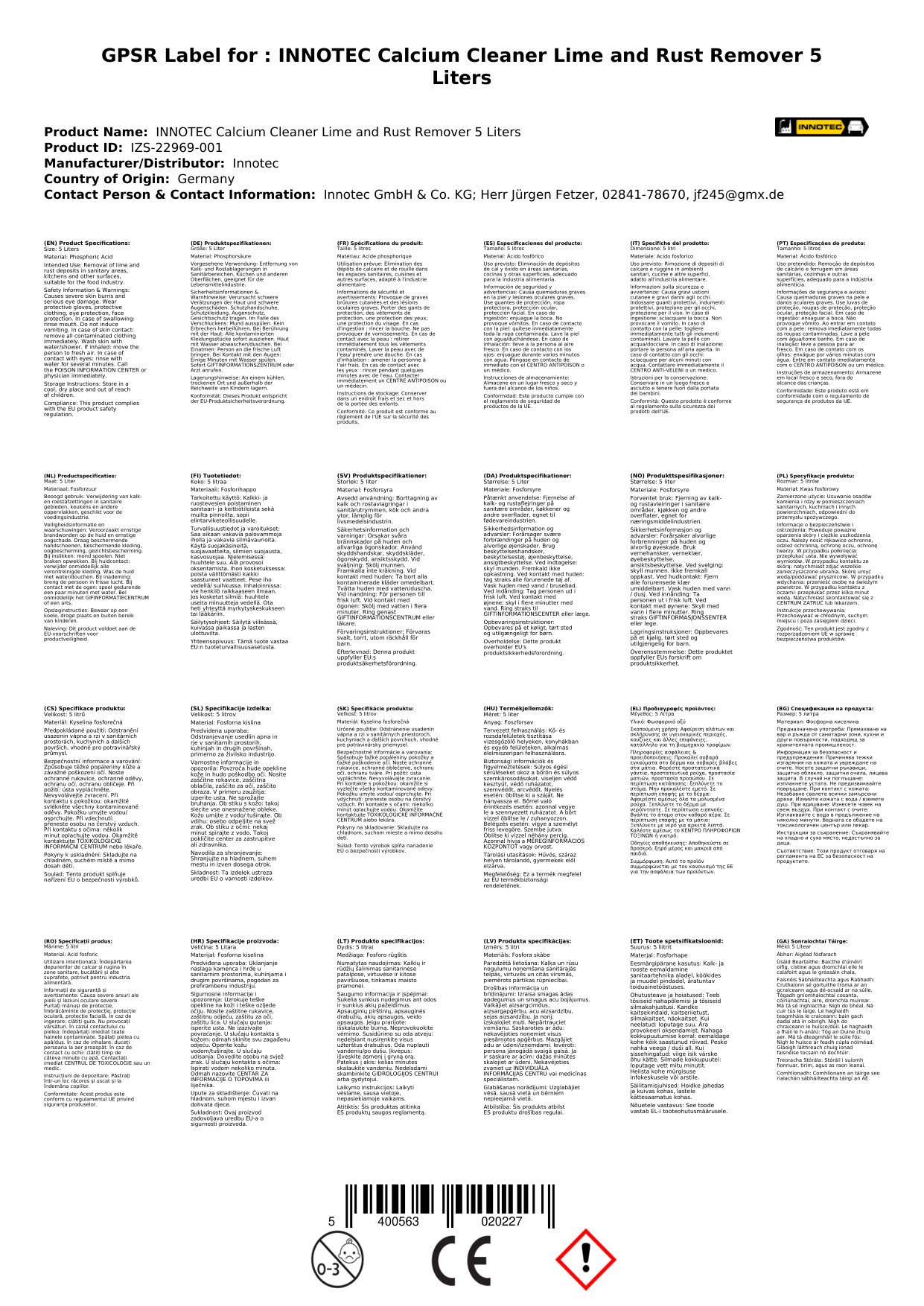 Cinntíonn ár nglantóir aolchloiche agus meirge go nglanann tú go héifeachtach agus go héasca. Le toirt 5 lítear, tá go leor agat le haghaidh post glantacháin iomadúla. Is féidir leis an nglantóir seo aolchloch, meirge agus salachar stubborn eile a bhaint go héifeachtach ó dhromchlaí éagsúla. Cén fáth go bhfuil sé seo tábhachtach duit: Faigheann tú táirge a shábhálann tú am agus iarracht agus a chuireann toradh gairmiúil ar fáil.