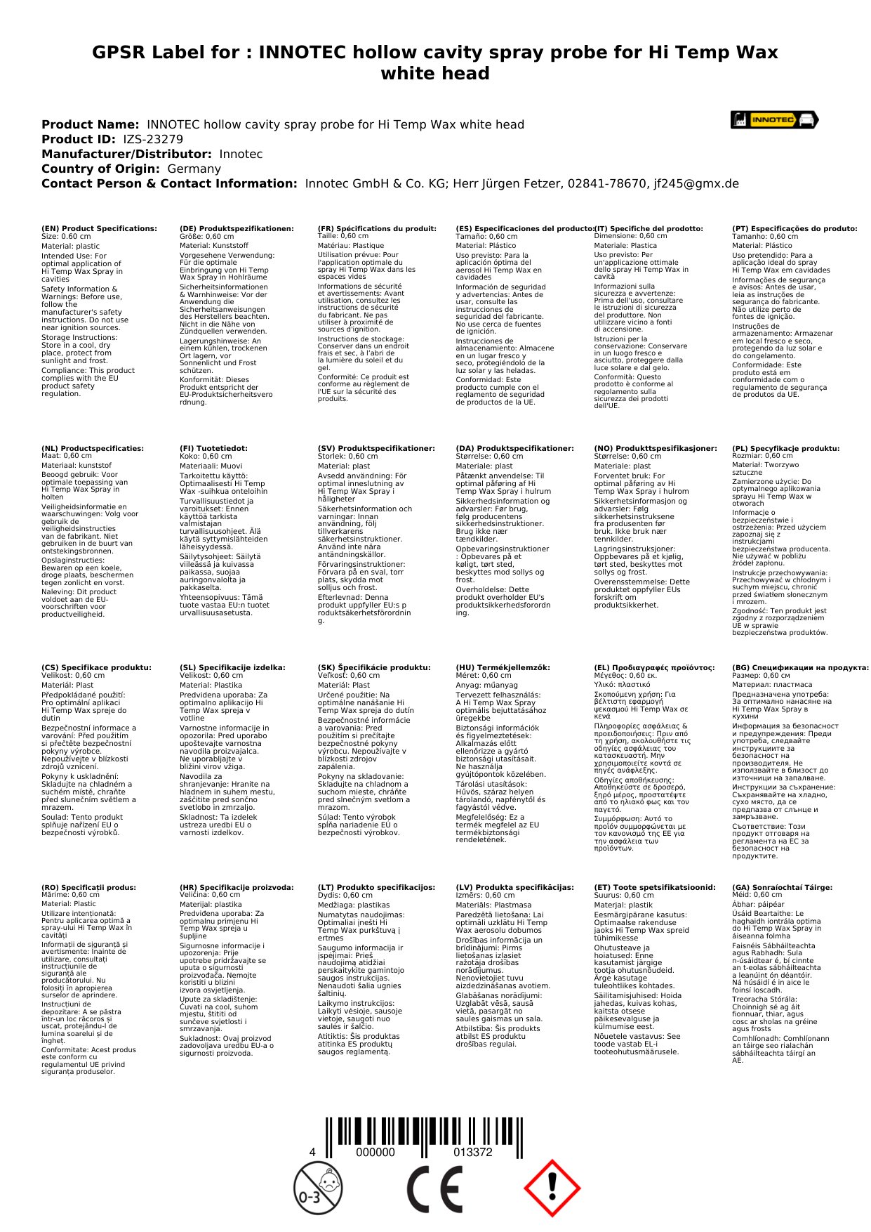 Tá an Probe Cuas INNOTEC seo deartha chun rochtain a fháil ar chuasa deacra le héascaíocht agus cruinneas. Tá ceann bán speisialta aige le haghaidh infheictheachta níos fearr agus tá sé comhoiriúnach le HI-TEMP WAX. Tá a thógáil durable a chinntíonn feidhmíocht iontaofa, agus an dearadh spraeála a sholáthraíonn iarratas fiú. Tá sé seo riachtanach le haghaidh aon phost cothabhála ina bhfuil beachtas agus rochtain ríthábhachtach.