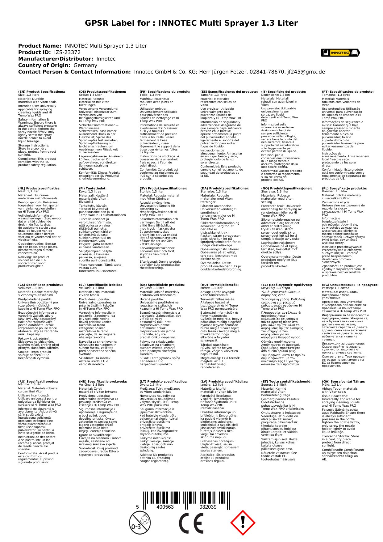 Spraeire ilfheidhmeach, Buidéal caidéil 1.3 lítear, Spraeire lámhdhéanta, Spraeire uisce, Glanadh spraeire