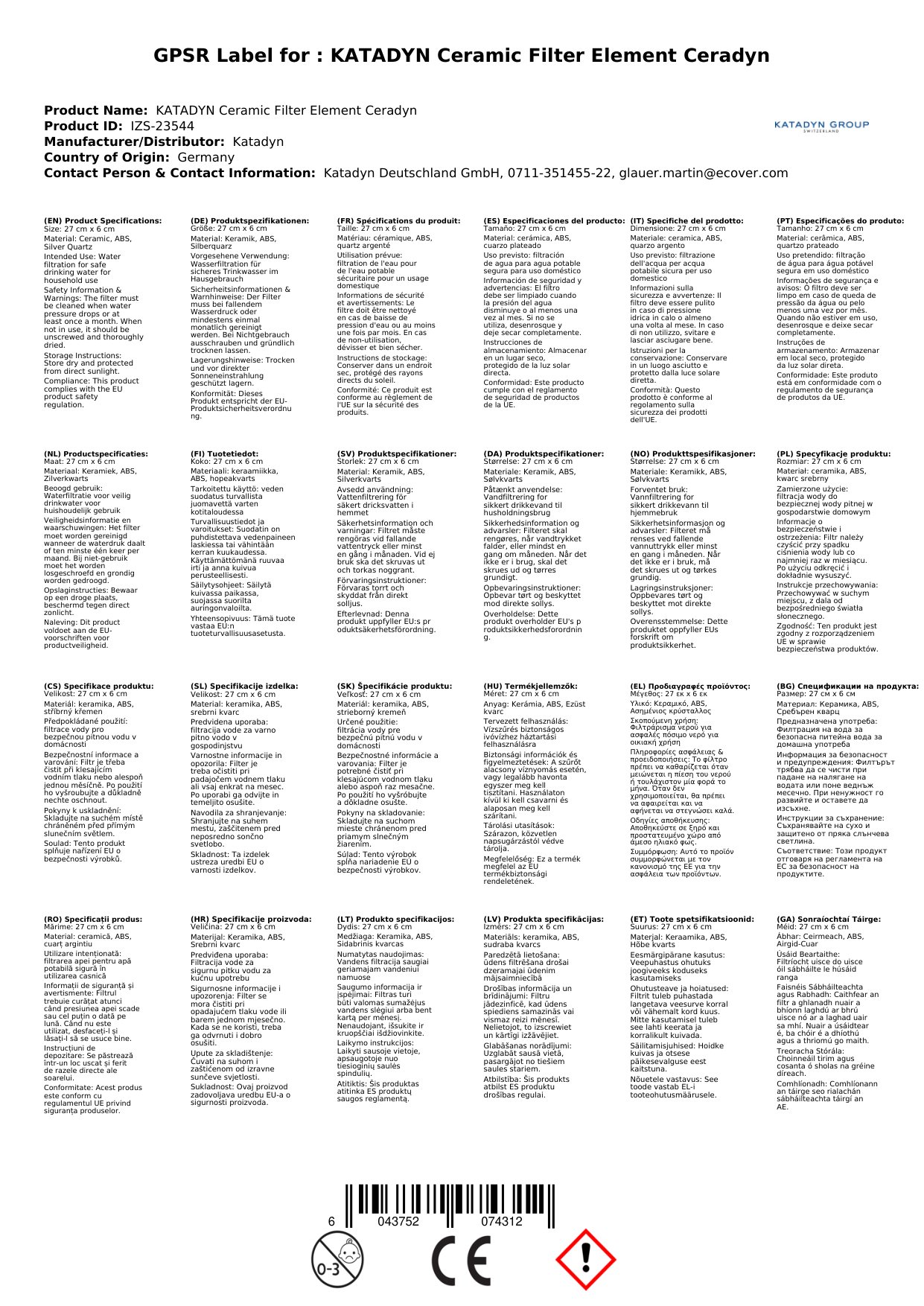 Tá an eilimint scagaire ceirmeach seo deartha chun uisce a ghlanadh go héifeachtach, ag cinntiú go bhfuil sé sábháilte le hól. Tá sé iniompartha agus éasca le húsáid, rud a fhágann go bhfuil sé iontach do ghníomhaíochtaí lasmuigh agus do chásanna éigeandála. Is féidir leis na mílte lítear uisce a scagadh, rud a sholáthraíonn réiteach fadtéarmach chun uisce glan a fháil. Tá sé ríthábhachtach chun sláinte agus sábháilteacht a chosaint nuair nach bhfuil rochtain ag uisce sconna glan agat.