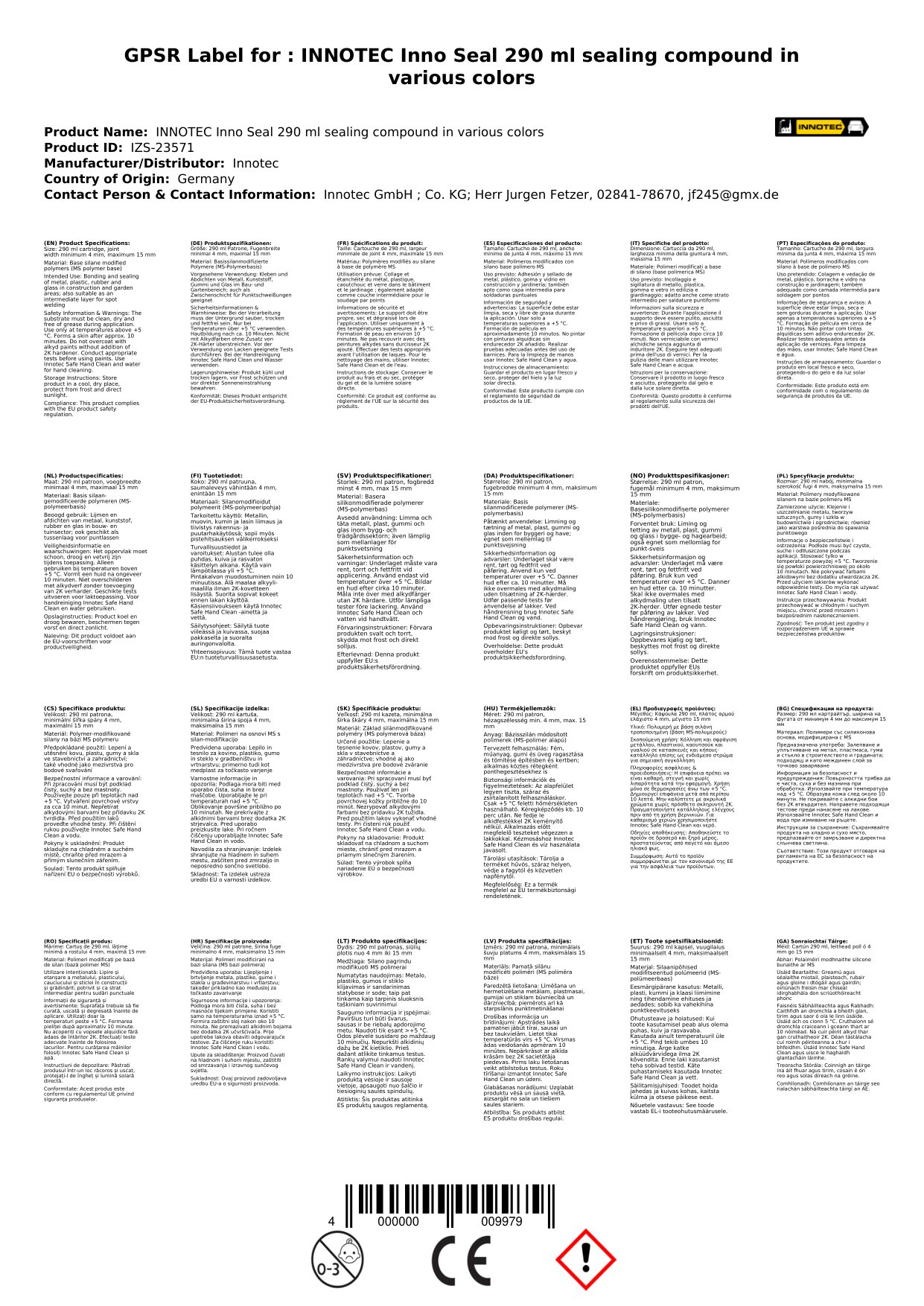 Séalaí uiscedhíonach, Séalaíocht, Séalaí Ilfheidhmeach, Inno Seal 290 ml, Dichtmasse, Maisc Dheisiúcháin