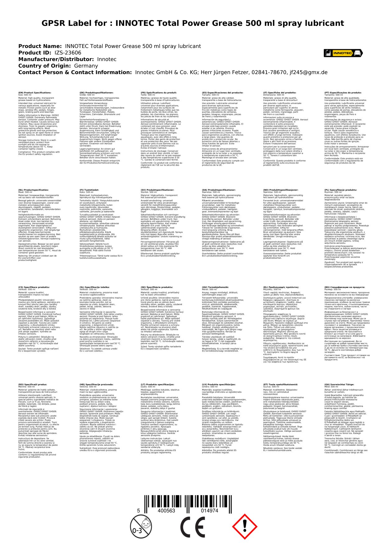 Gréisc Cumhachta Iomlán, Gréisc Spraeála, Gréisc 500ml, Gréisc Tionsclaíoch