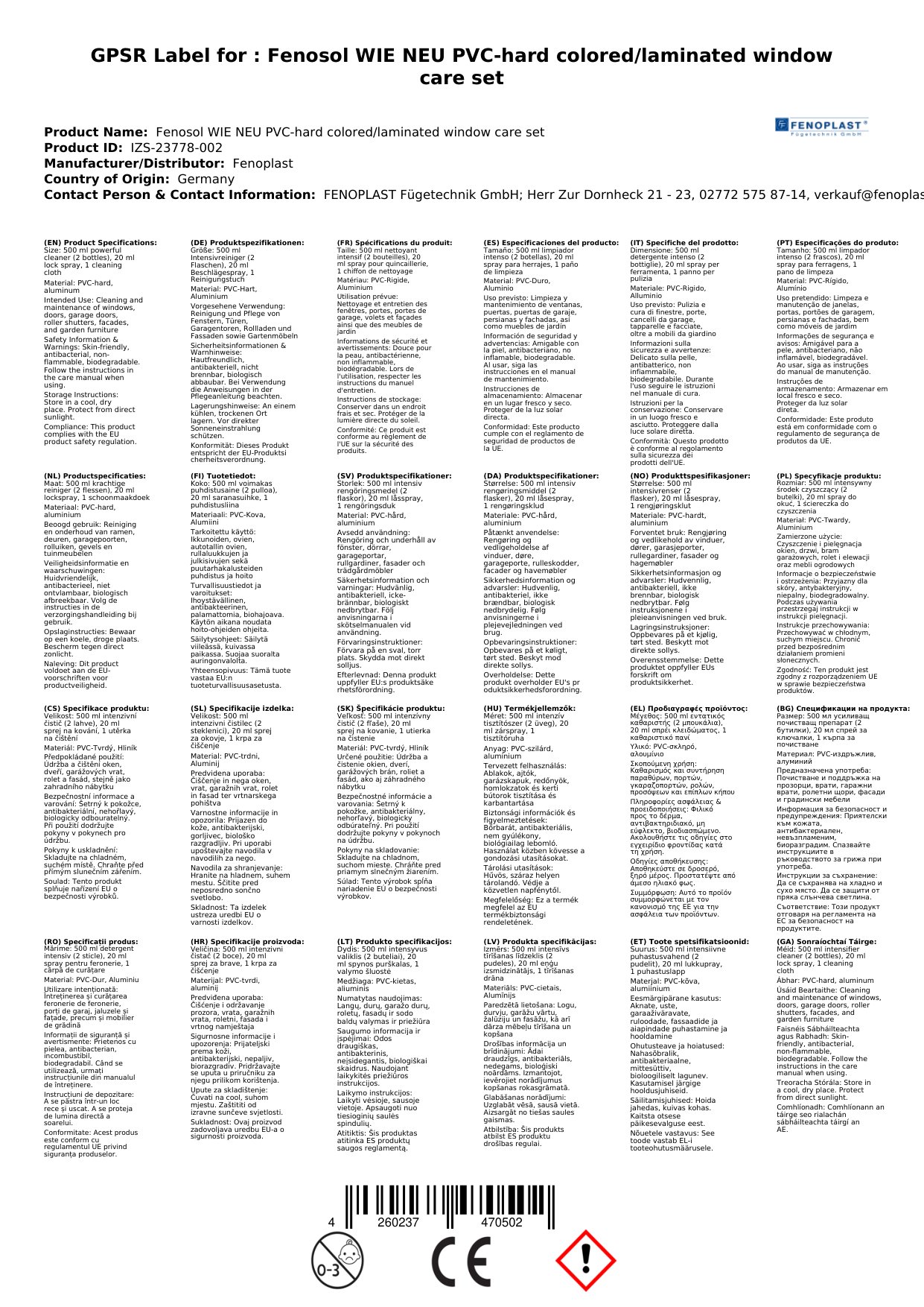 Tá an feisteán cúraim fuinneog PVC seo deartha go speisialta chun aire a thabhairt do chuid fuinneoga. Tá sé oiriúnach do gach cineál fuinneog PVC, lena n-áirítear fuinneoga daite. Leis an bhfoirmle glantacháin speisialta, is féidir leat salachar agus smál a bhaint go héasca, ag fágáil do chuid fuinneoga ag breathnú glan agus lonrach. Cén fáth go bhfuil sé seo tábhachtach duit: Cinntíonn tú go mbeidh do chuid fuinneoga PVC álainn ar feadh blianta fada le teacht.