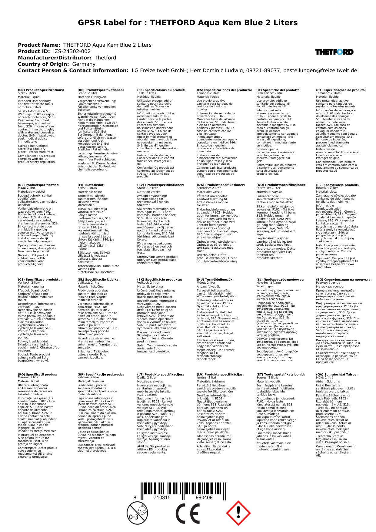 Tá ár nglantóir leithris deartha go speisialta le haghaidh leithris iniompartha. Tagann sé i mbotella 2 lítear, atá áisiúil agus fada buan. Cuireann sé cosc ar bholadh mí-thaitneamhach agus coinníonn sé do leithreas campála glan. Roghnaigh ár nglantóir chun taithí níos taitneamhaí a bheith agat ag campáil.