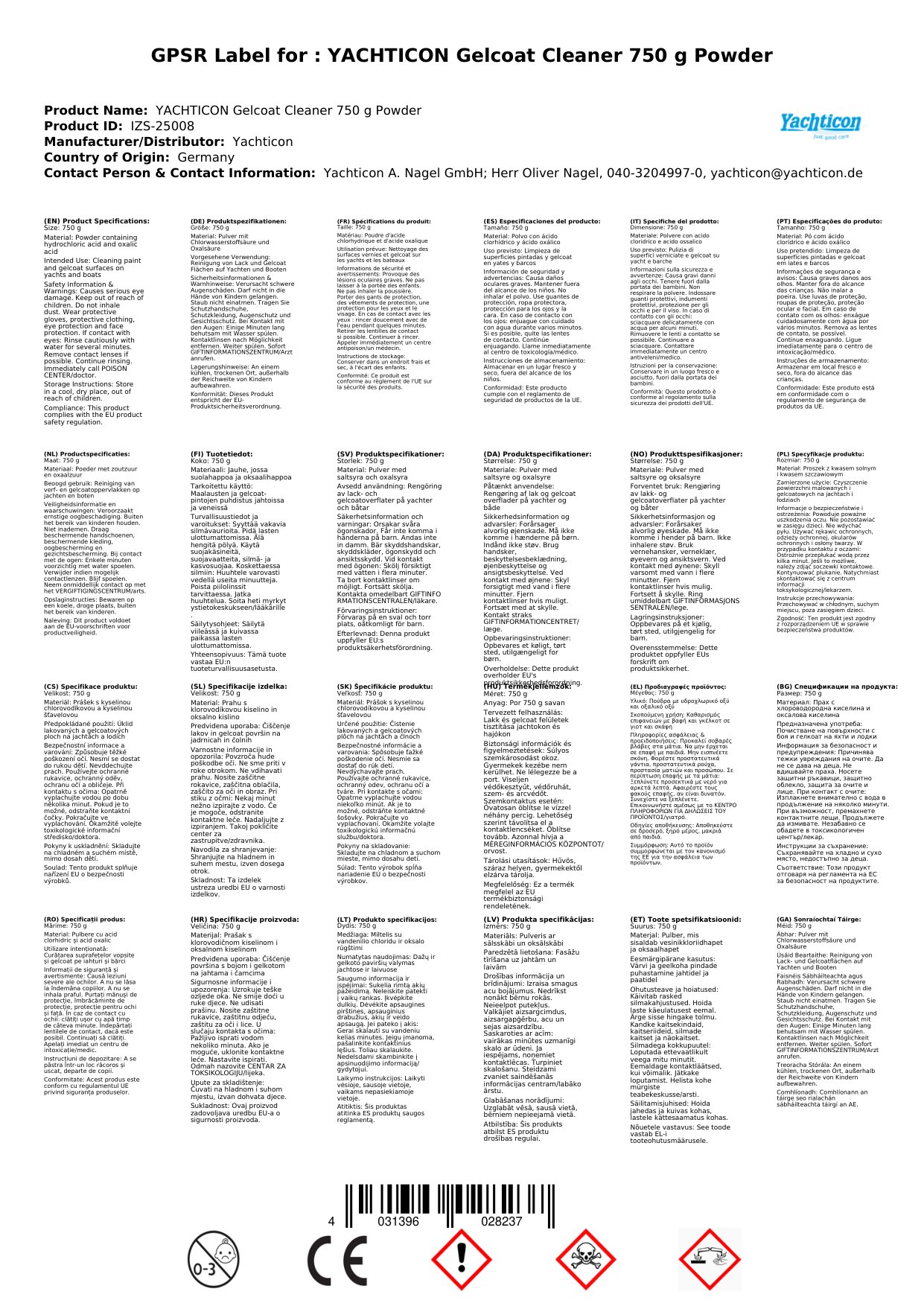 An bhfuil cuma shalchaoch ar do ghealchóta? An bhfuil tú ag lorg bealach éifeachtach le stains agus salachar a bhaint gan dochar a dhéanamh don dromchla? Tá Glantach Púdar Gealchóta 750g anseo chun cabhrú leat! Déanann an fhoirmle chumhachtach seo an obair go tapa, ag fágáil bailchríoch lonrach, cosanta ar do bhád nó ar dhromchlaí gealchóta eile. Faigh réidh leis an smúit agus cuir snas úr ar ais i do threalamh.