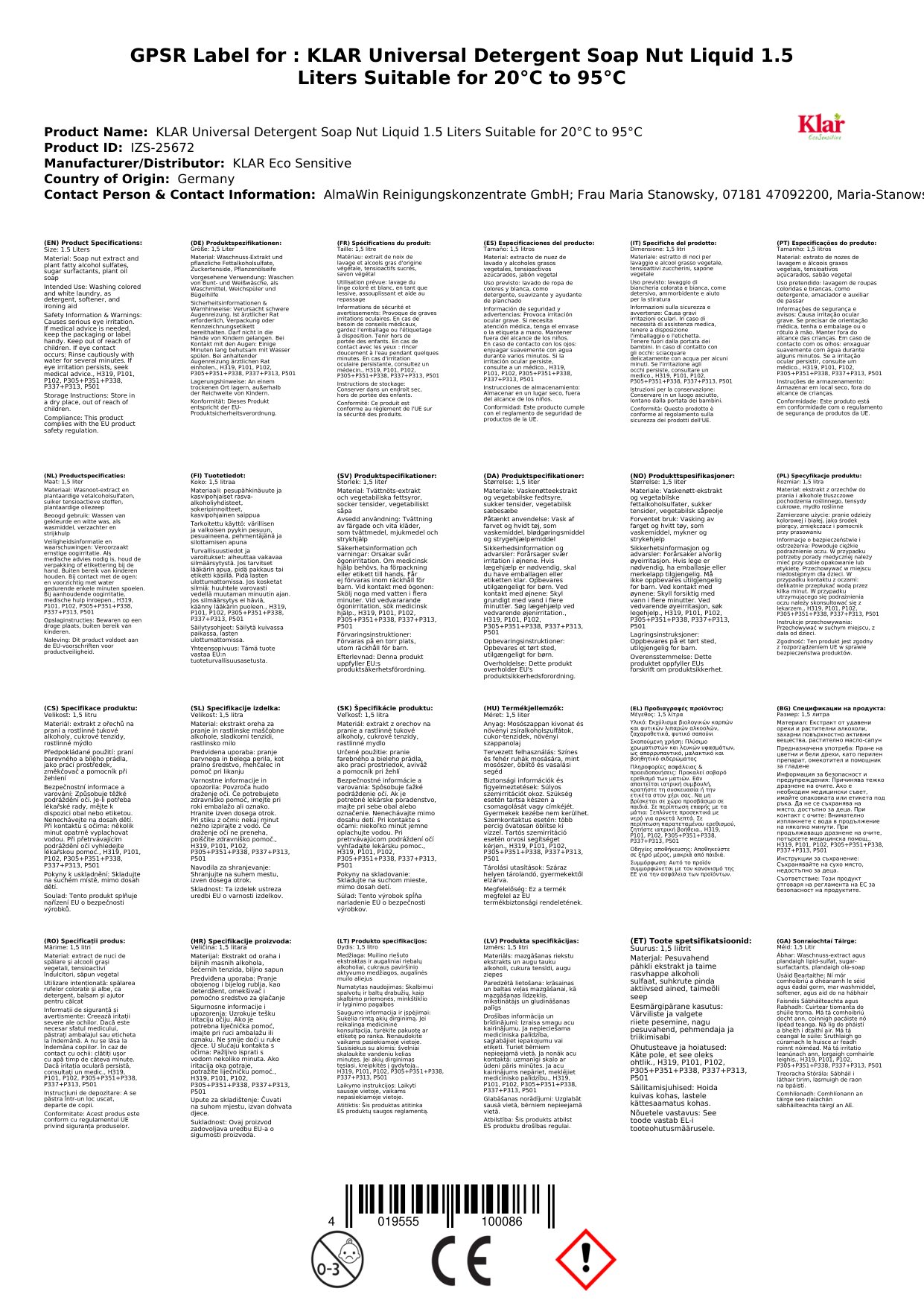 Ag lorg glantach níocháin nádúrtha agus éifeachtach? Tá ár glantach níocháin uilíoch le gallchnó níocháin foirfe duit! Tá sé oiriúnach do níocháin idir 20°C agus 95°C, ag cinntiú éadaí glana gan ceimiceáin chrua. Leis an bhfoirmle leachtach, tá sé éasca le húsáid agus milis ar éadaí íogaire. Bain triail as inniu agus faigh amach an difríocht!