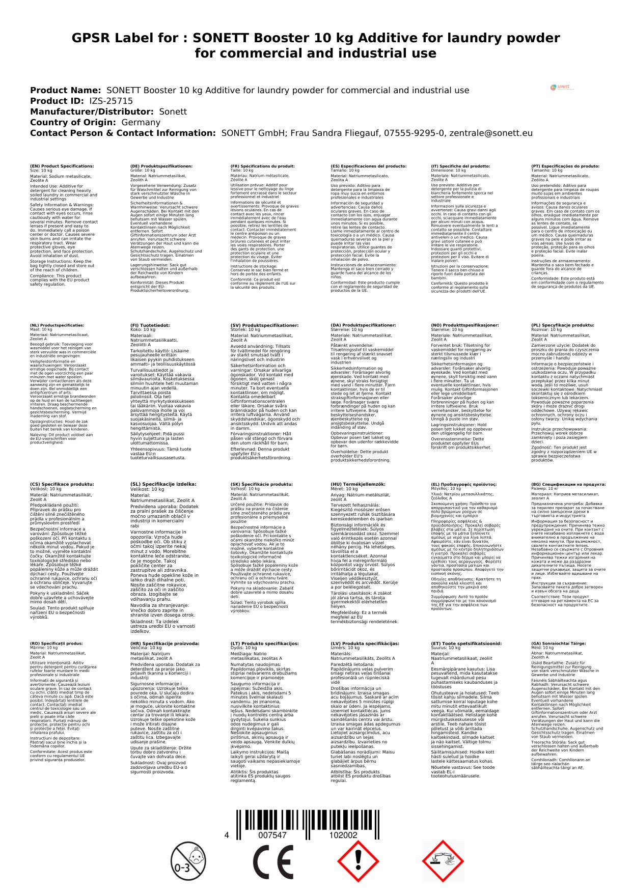 Contúirt: Aicmiú de réir VO 1272/2008: H302 - Díobhálach má shlogtar. H318 - Is cúis le damáiste tromchúiseach don tsúil.