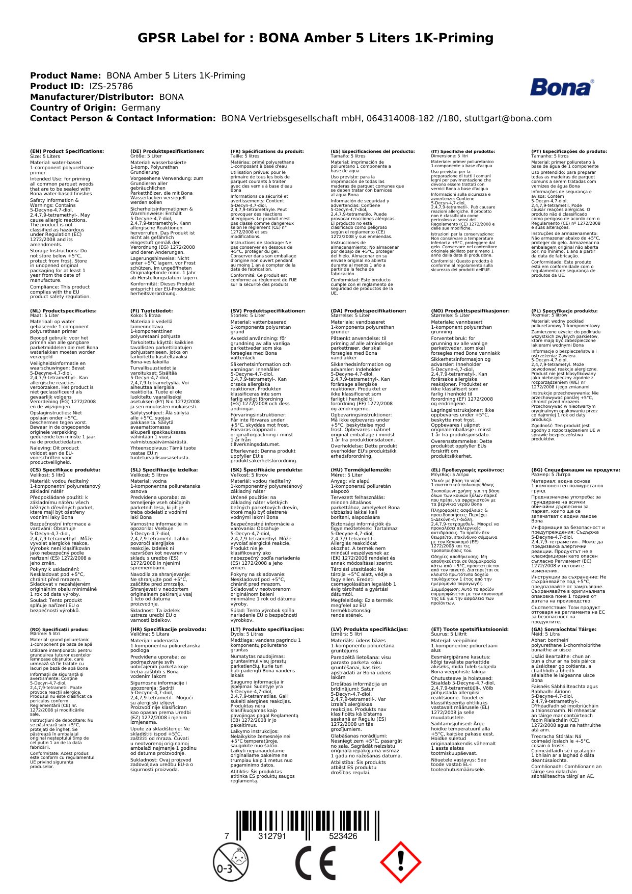 Primer adhmaid, Bona Amber 5 L, Primer urláir adhmaid, Primer 1K