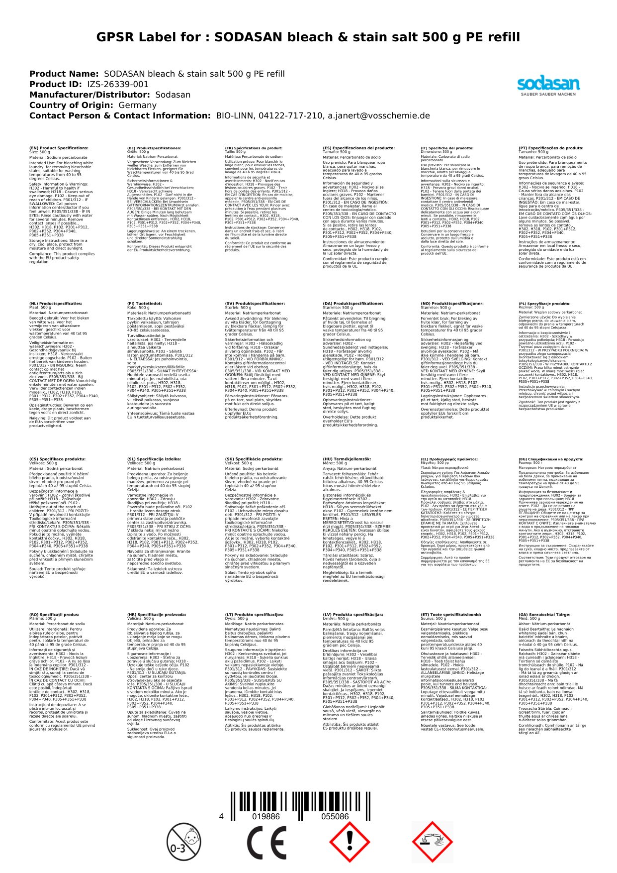 Cuir ceist chun níos mó a fhoghlaim faoin táirgeBleach, Salann stain, 500 g PE-Athlíonadh, Bainteoir stain, Glanadh tí