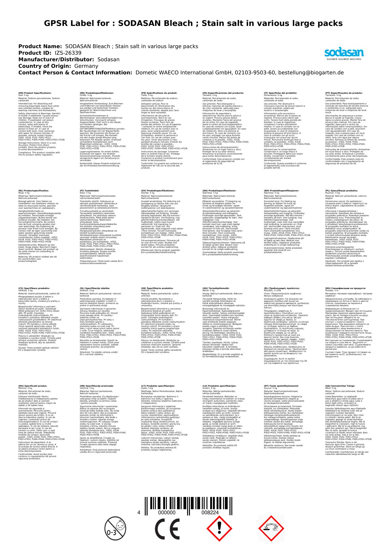 Tá ár dtuarthóir nádúrtha agus salann stain deartha chun stains stubborn a bhaint go héifeachtach agus go nádúrtha. Tá sé sábháilte le húsáid ar gach dath agus fabraic, rud a chiallaíonn gur féidir leat é a úsáid go muiníneach ar do chuid éadaí agus dromchlaí eile. Tá sé oiriúnach le haghaidh glanadh tí éiceolaíoch. Tá sé seo tábhachtach duit mar is féidir leat teach glan a bheith agat gan dochar a dhéanamh don chomhshaol.