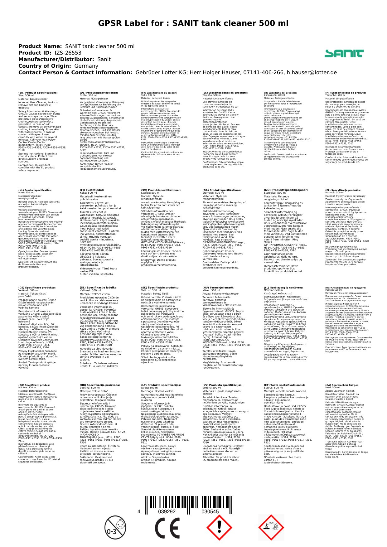 - P305/351/338 – MÁ BHFUIL SÉ IN AONTACHT LE SÚILE: Sruthlaigh go cúramach le huisce ar feadh roinnt nóiméad. Bain lionsaí teagmhála, má tá siad i láthair agus éasca le déanamh. Lean ar aghaidh ag sruthlú.