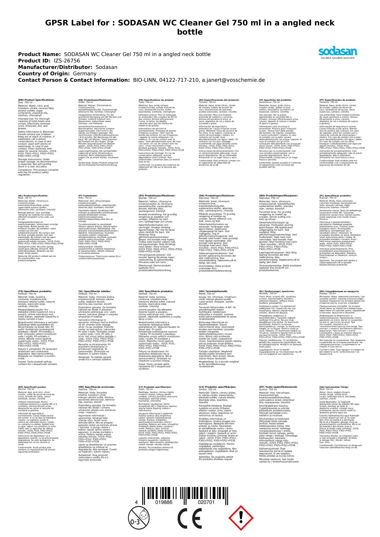 An bhfuil tú ag lorg réiteach éifeachtach le haghaidh glanadh leithris? Tá ár Glóthach Glantacháin Leithris 750 ml anseo chun cabhrú leat. Leis an bhfoirmle chumhachtach seo, gheobhaidh tú leithreas glan agus úr gan stró. Bain triail as inniu agus féach an difríocht!