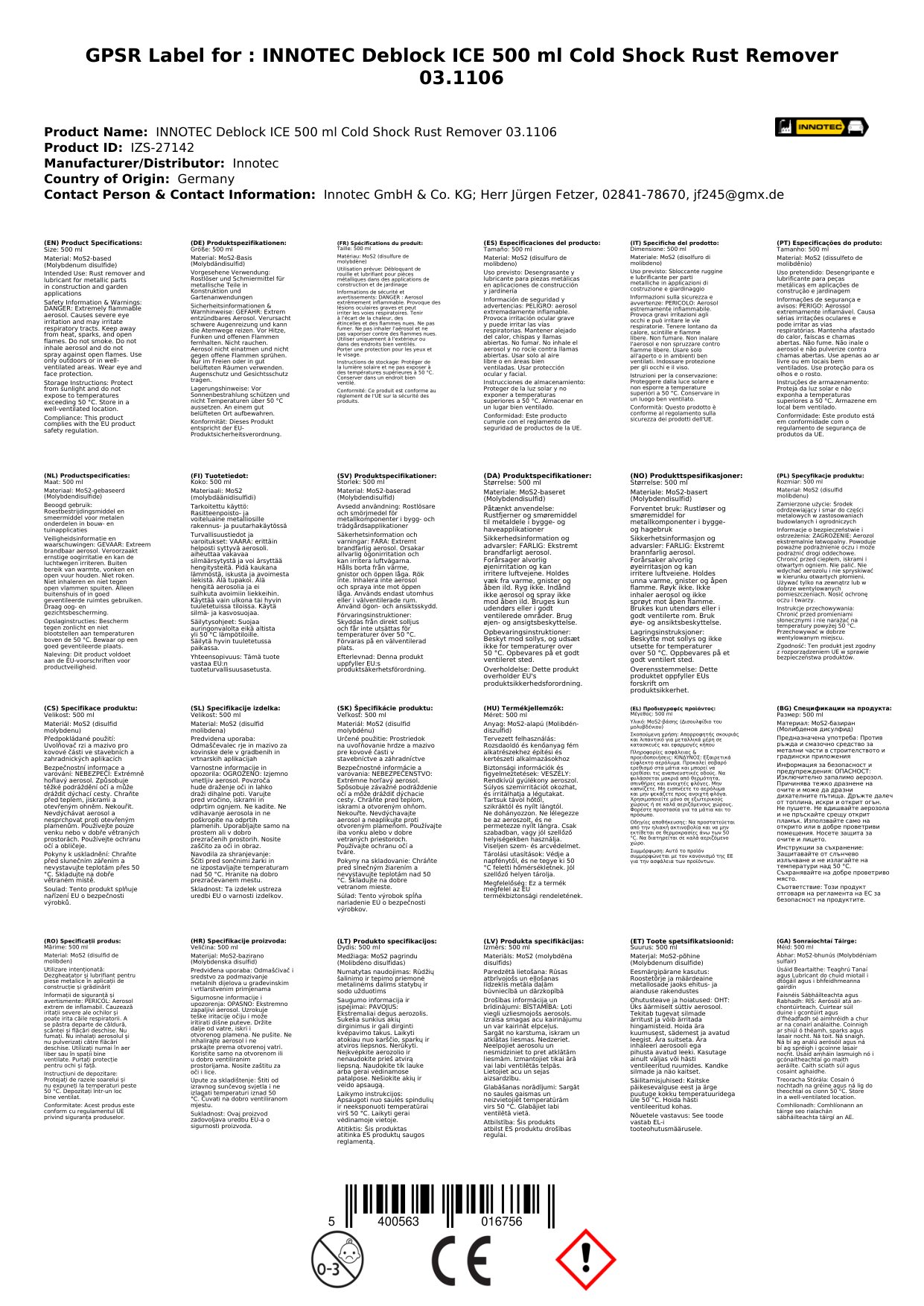 An bhfuil tú ag streachailt le boltaí meirgeacha nó páirteanna reoite a scaoileadh? Tá an Díbhlocóir meirge, díbhlocóir reo seo deartha go speisialta chun dul i ngleic leis na fadhbanna is deacra. Leis an bhfoirmle Kälteschock, briseann sé síos meirge agus scaoileann sé páirteanna reoite go tapa agus go héifeachtach. Faigh réidh leis an strus agus cuir ord ar ais i do shaol leis an díbhlocóir iontach seo.