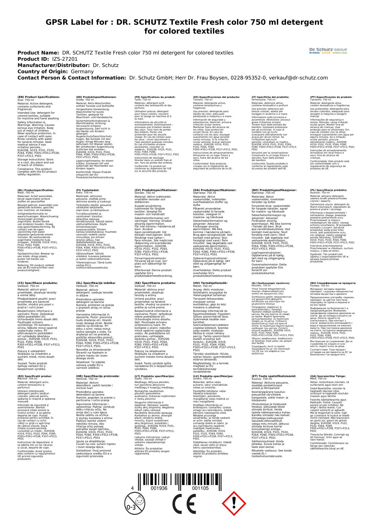 Glanadh teicstíle dathanna, Níochán teicstíle dathanna, Glanadh teicstíle daite, 750 ml