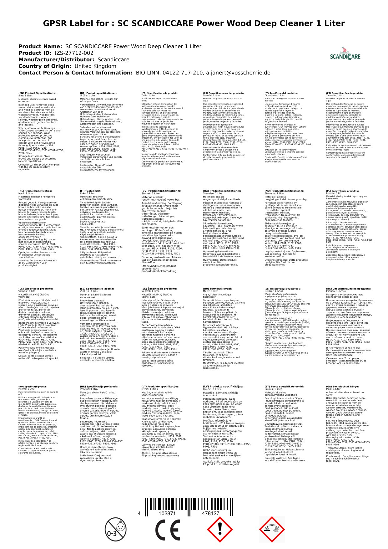 Contúirt: Aicmiú de réir VO 1272/2008: H302 - Díobhálach má shlogtar. H318 - Déanann sé damáiste tromchúiseach do na súile.