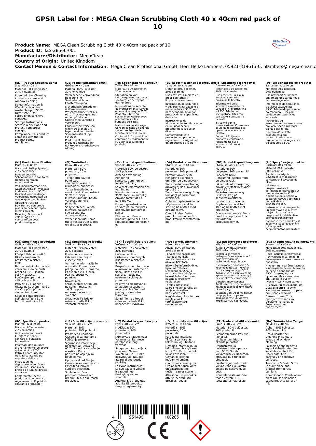 - Éifeachtach: Deireadh a chur le salachar agus smál go héasca le héadaí glantacháin MEGA Clean.