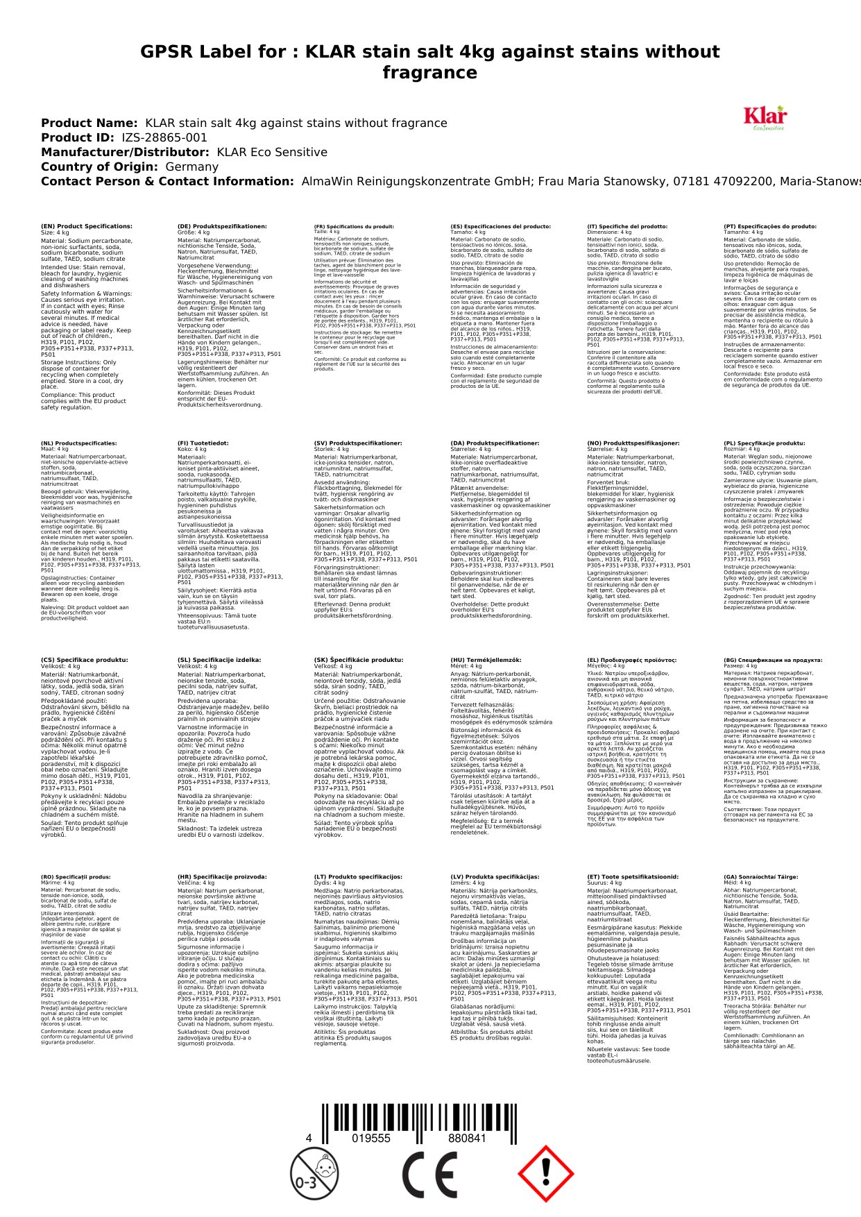 | Brand: | KLAR Eco Sensitive |