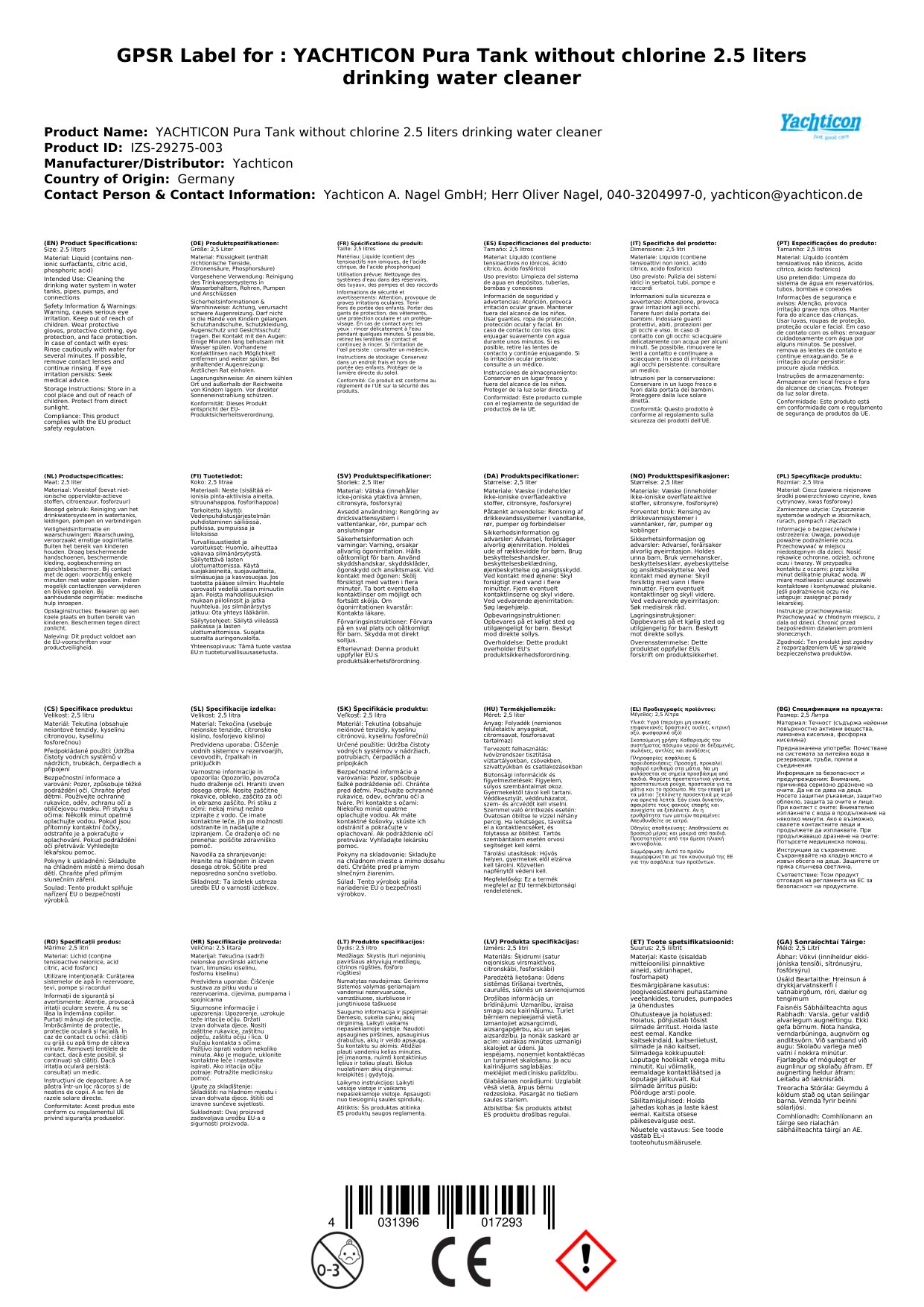 Aire: Aicmiú de réir VO 1272/2008: H302 - Díobhálach má shlogtar. H319 - Is cúis le greannú tromchúiseach súl.