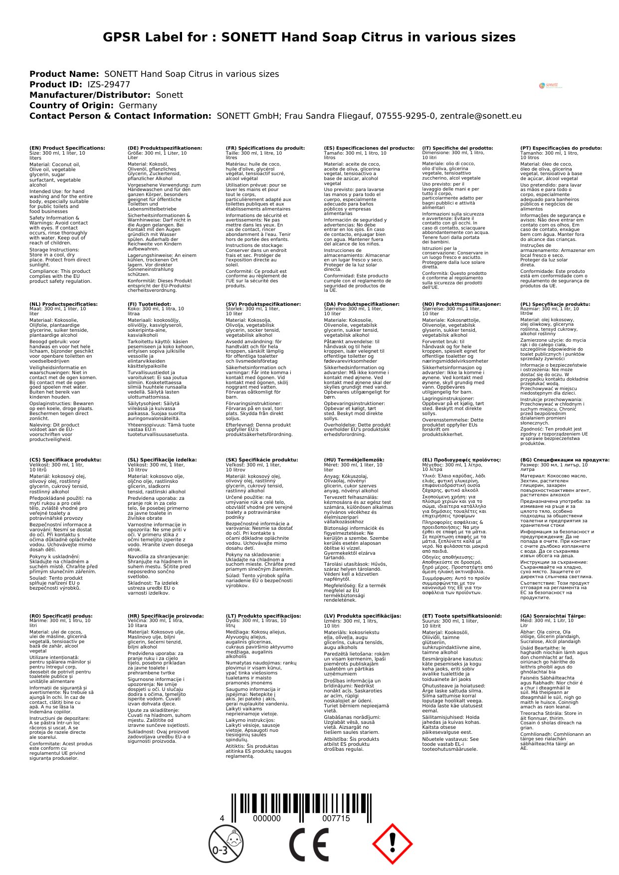 Tá ár ngallúnach láimhe citris déanta as comhábhair orgánacha agus nádúrtha. Tá sé oiriúnach do gach cineál craicinn agus tá cumhrán citris athnuachana aige. Cinntíonn an fhoirmle uathúil go nglantar do lámha go críochnúil gan iad a thriomú. Seo an fáth go bhfuil sé tábhachtach duit: gheobhaidh tú gallúnach láimhe a chosnaíonn do chraiceann agus a thugann aire don timpeallacht.