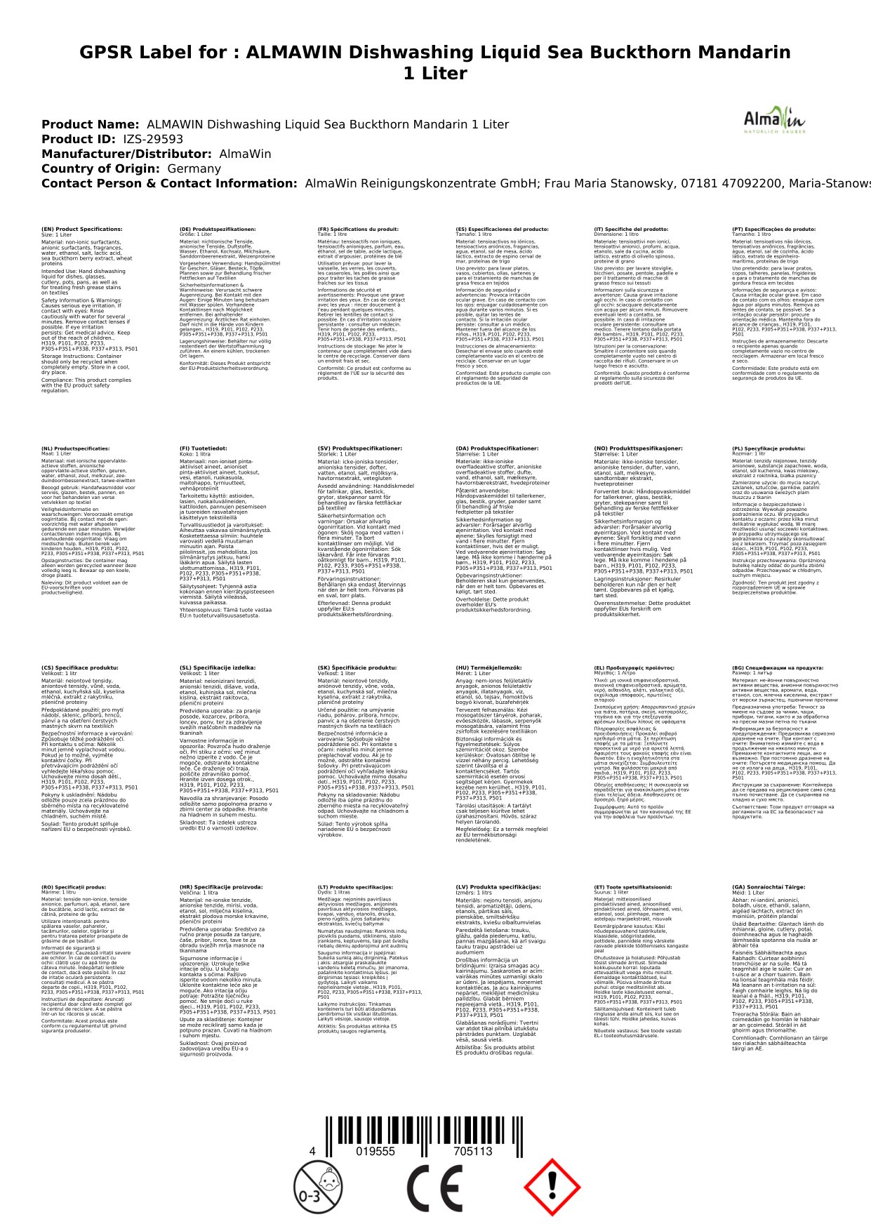 Glanadh mias Sanddorn Mandairín 1 Lítear, Leacht níocháin mias, Níochán mias nádúrtha