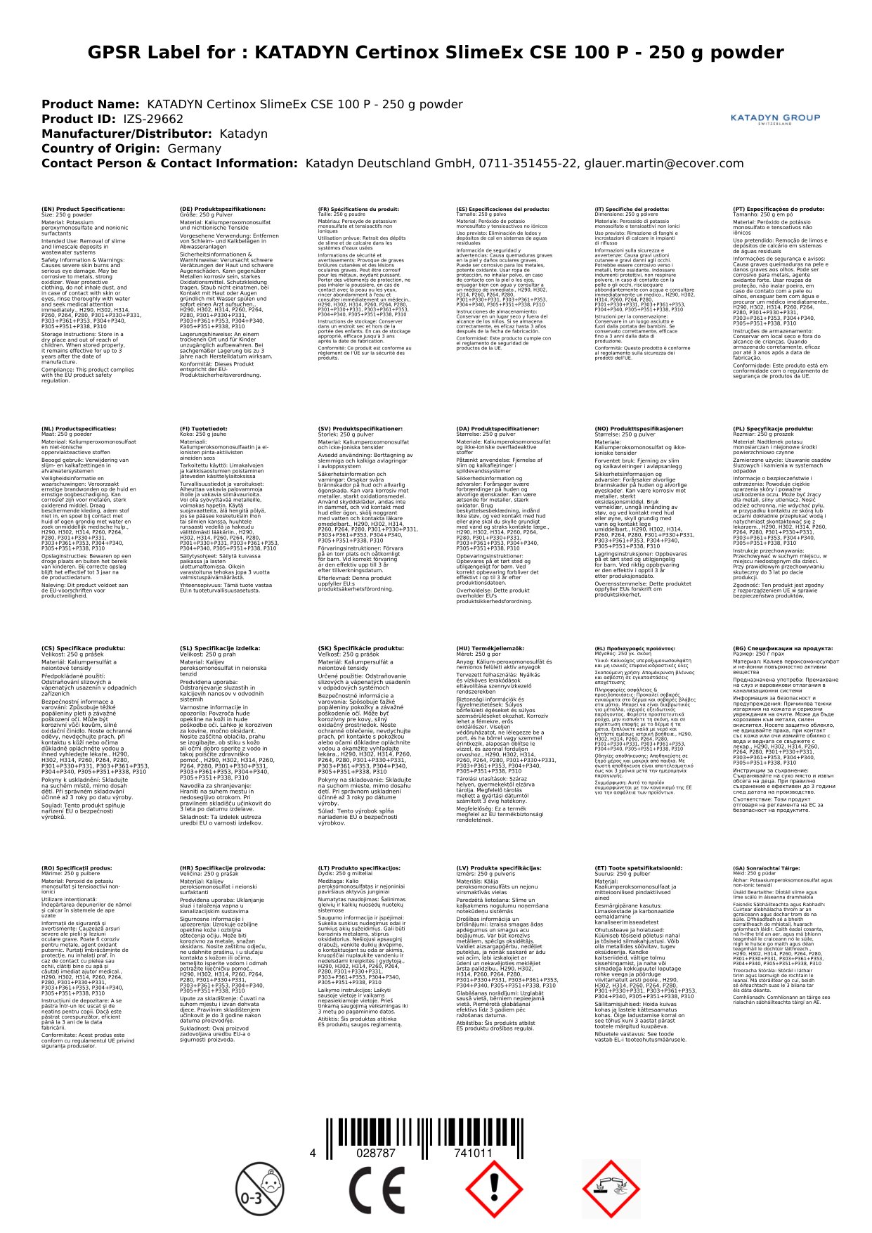 Contúirt: Aicmiú de réir VO 1272/2008: H302 - Díobhálach má shlogtar. H318 - Is cúis le damáiste tromchúiseach súl.