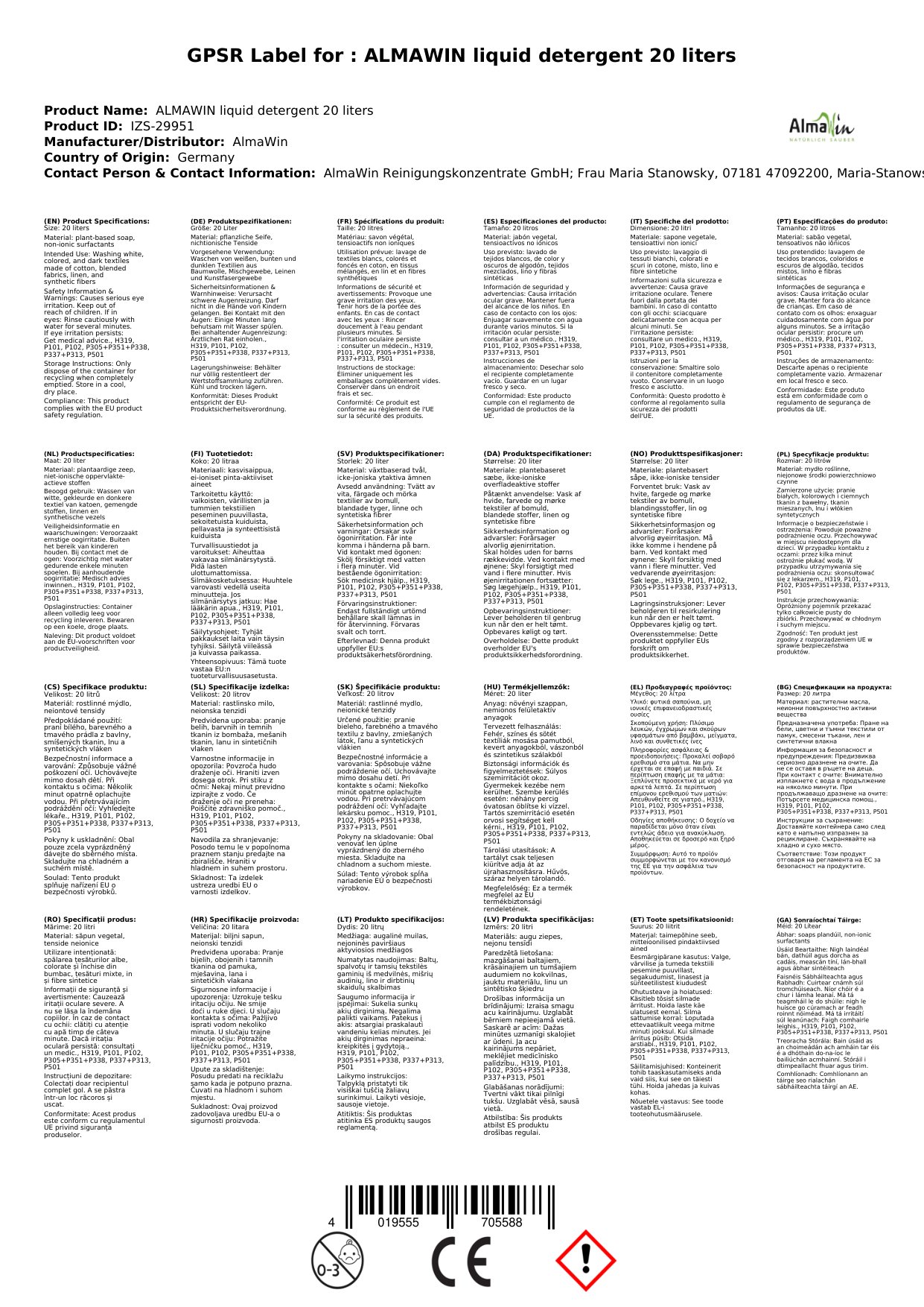 Cuir ceist chun níos mó a fhoghlaim faoin táirgeGlantach níocháin leachtach 20 l, glantach níocháin éicea, níochán leachtach