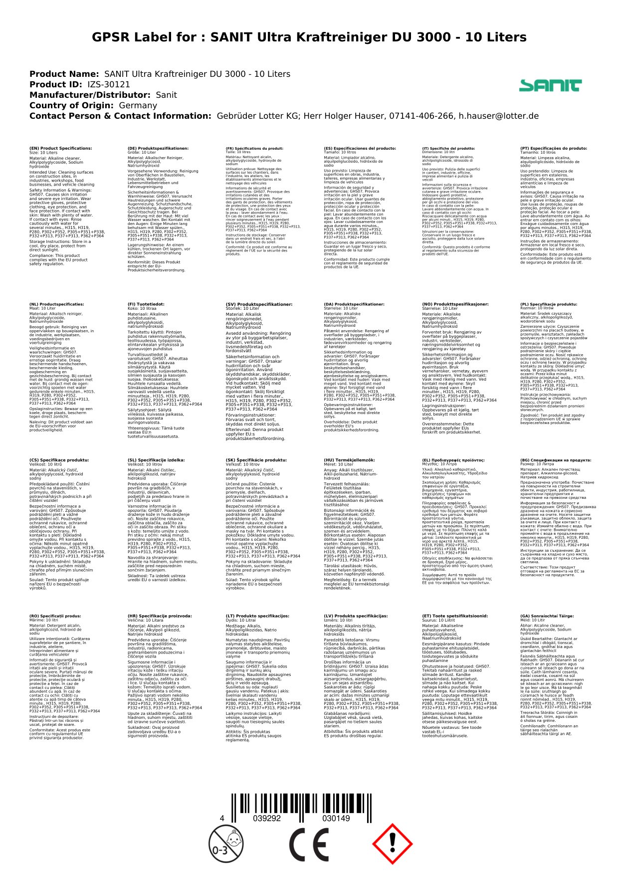 Glanadh Tionsclaíoch 10 Liter, Glanadh Láidir, Glanadh Uilíoch