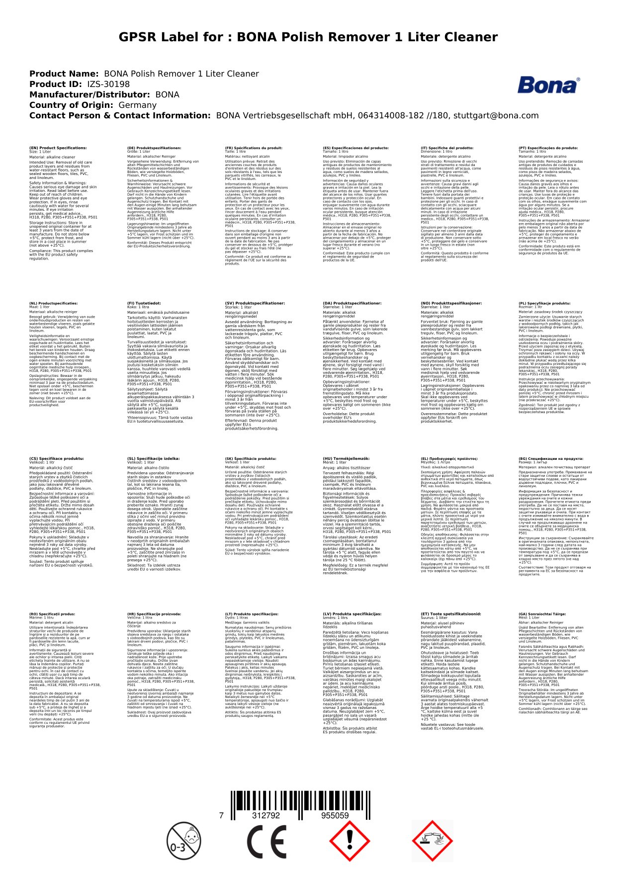 Glanadh urláir, Bainteoir snas urláir, 1 Lítear Grundreiniger
