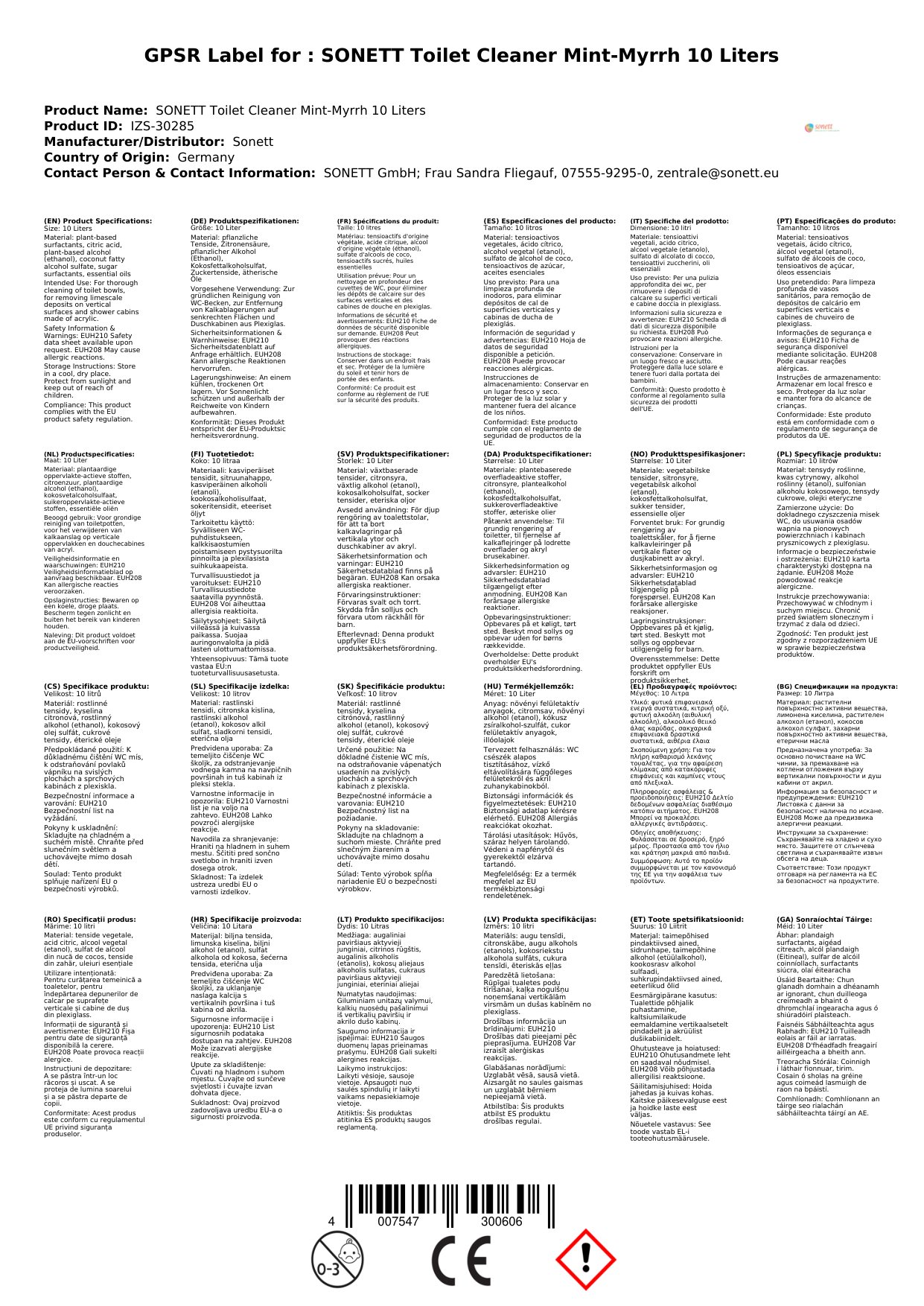 Tá ár nglantóir leithris nádúrtha le miontas agus myrthe deartha chun do leithreas a ghlanadh go héifeachtach agus go nádúrtha. Le boladh úr mionta agus myrthe, fágann sé do leithreas ag boladh glan agus úr. Tá an fhoirmle orgánach sábháilte do do theaghlach agus don chomhshaol. Cén fáth go bhfuil sé seo tábhachtach duit: Cinntíonn tú leithreas glan agus úr ar bhealach inbhuanaithe.