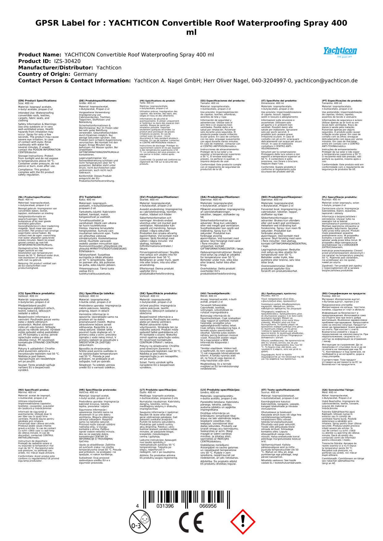 Spraeáil uiscedhíonach, Spraeáil Impregnation, 400ml, Cosaint uisce, Cabriolet dín