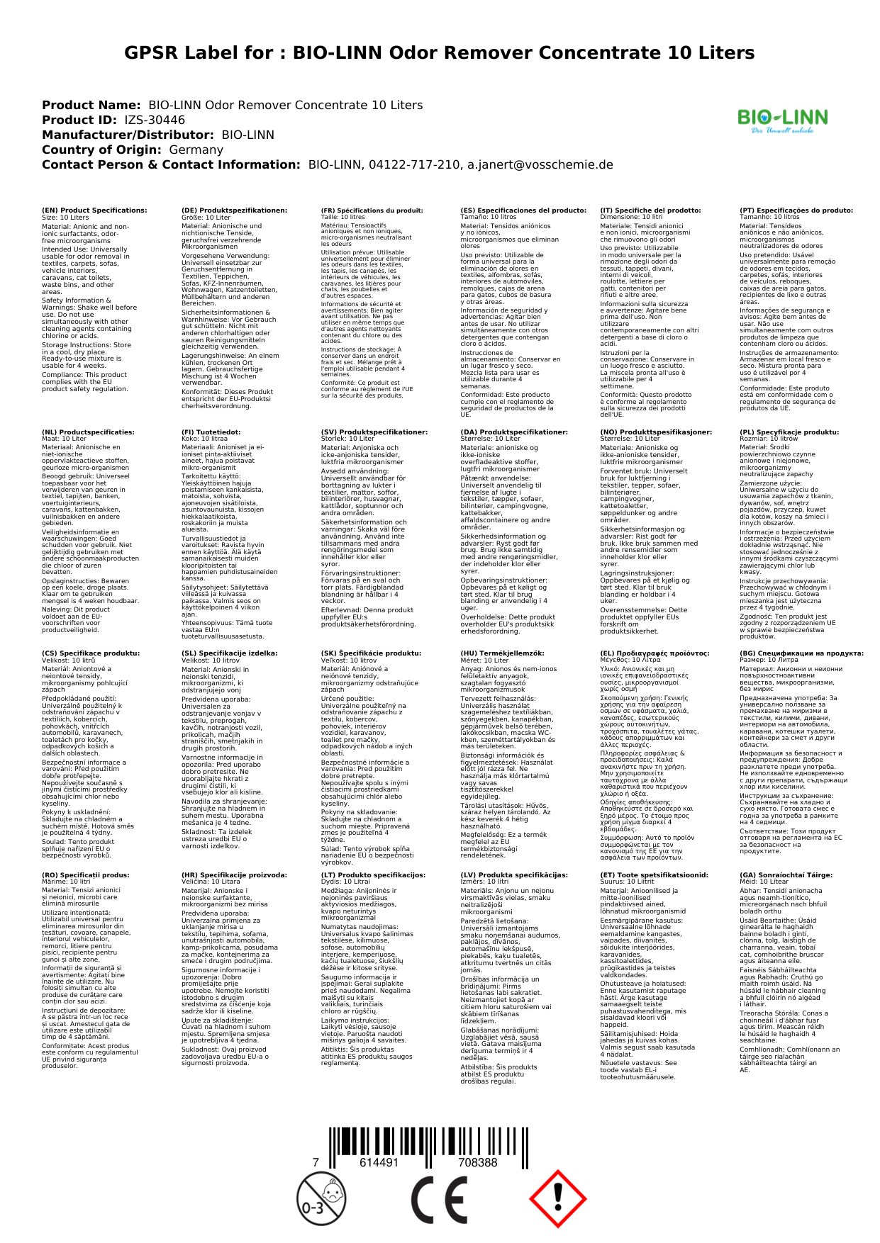Tá an t-athlíonadh seo tiubhaithe, orgánach, agus réidh le húsáid. Tagann sé i gcoimeádán 10 lítear, rud a chiallaíonn go mbeidh go leor agat chun bolaithe éagsúla a neodrú. Tá sé foirfe le húsáid i dtithe gloine, gairdíní, agus spásanna eile ina bhfuil bolaithe míthaitneamhacha agat. Cén fáth go bhfuil sé seo tábhachtach duit? Toisc go soláthraíonn sé réiteach fadtéarmach agus éifeachtach ar fhadhb na mbolaithe.