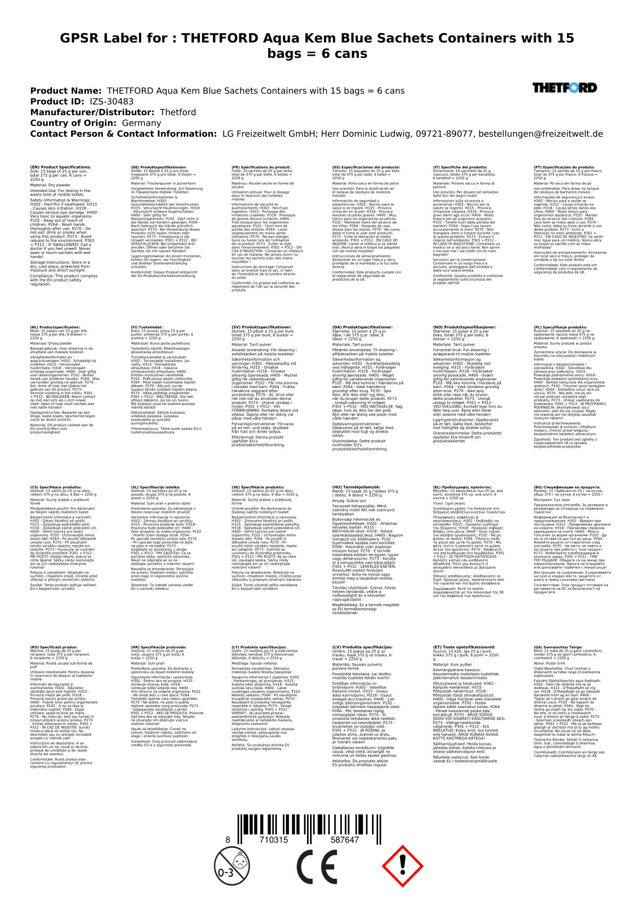 Tá na sachets deartha chun a bheith sábháilte le húsáid i leithris iniompartha agus ní dhéanann siad dochar don timpeallacht nuair a úsáidtear iad de réir na dtreoracha.