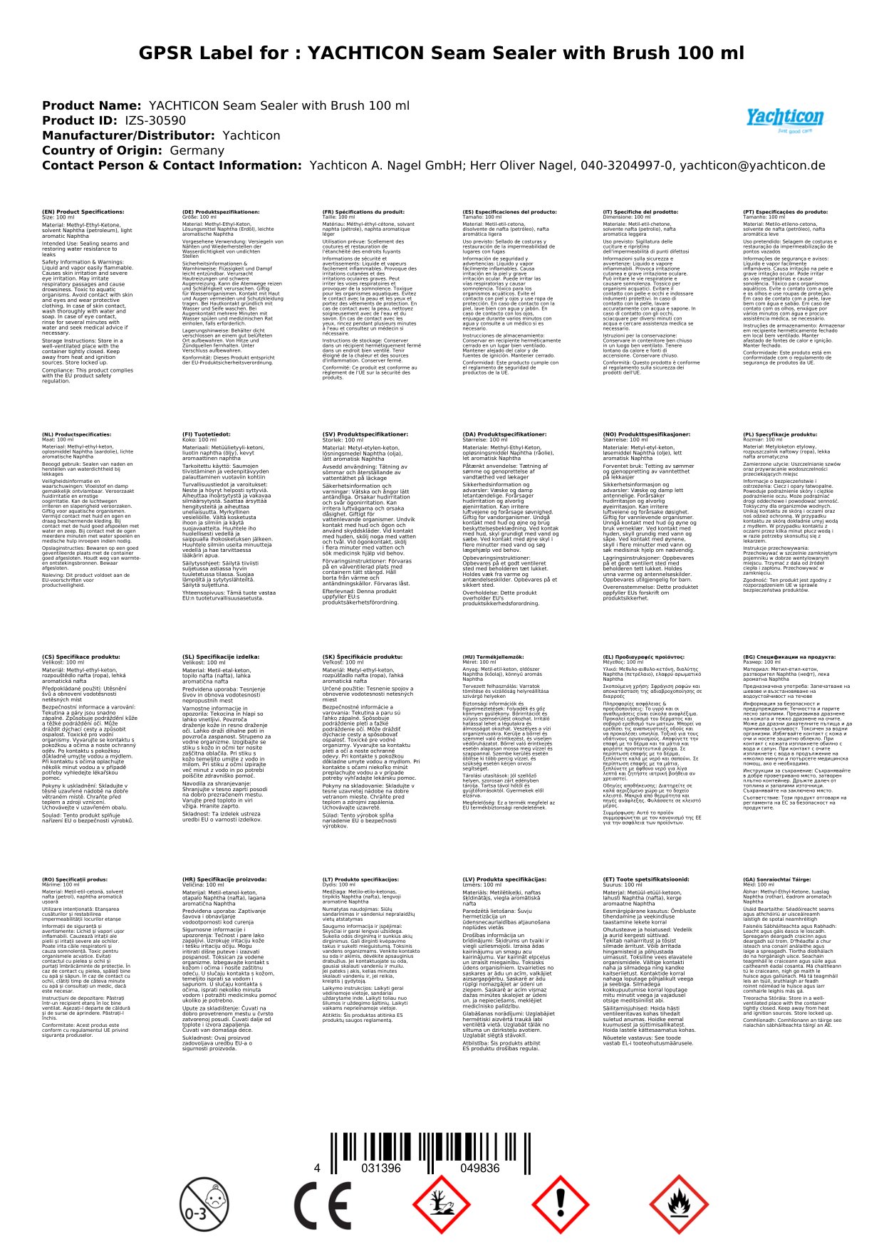 Tairgeann ár séalaitheoir seamanna cosaint iontaofa do do bhád. Leis an scuab atá san áireamh, tá sé éasca é a chur i bhfeidhm go cruinn. Tá sé uiscedhíonach agus tá sé deartha chun na seams a chosaint ar na heilimintí. Cinntíonn an méid 100 ml go bhfuil go leor agat chun críocha éagsúla. Tá sé seo tábhachtach duit mar is féidir leat a bheith cinnte de shéalú fadtéarmach agus éifeachtach.