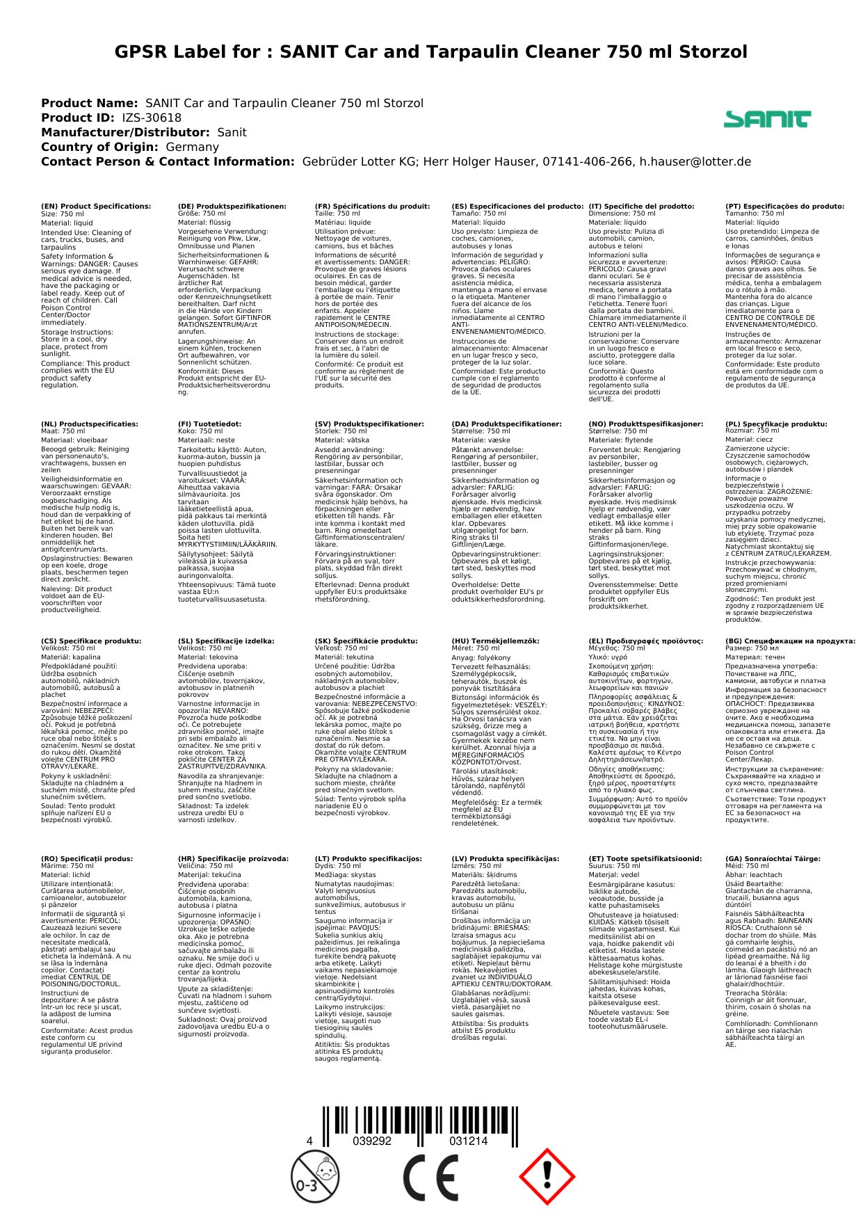 An bhfuil tú ag lorg réiteach éifeachtach chun carranna, tarpaulins, agus feithiclí a ghlanadh? Tá ár Glantóir Spraeála 750ml deartha go speisialta chun salachar agus grime a bhaint go héasca, ag fágáil dromchlaí glan agus athnuachana. Leis an bhfoirmle láidir seo, is féidir leat torthaí gairmiúla a bhaint amach sa bhaile. Bain triail as anois agus féach an difríocht!