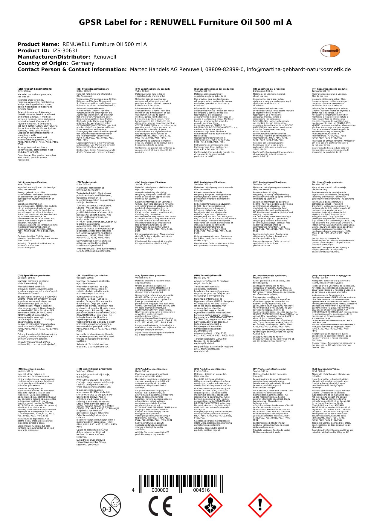 Nuair a cheannaíonn tú ár n-ola troscáin ónár siopa, gheobhaidh tú: