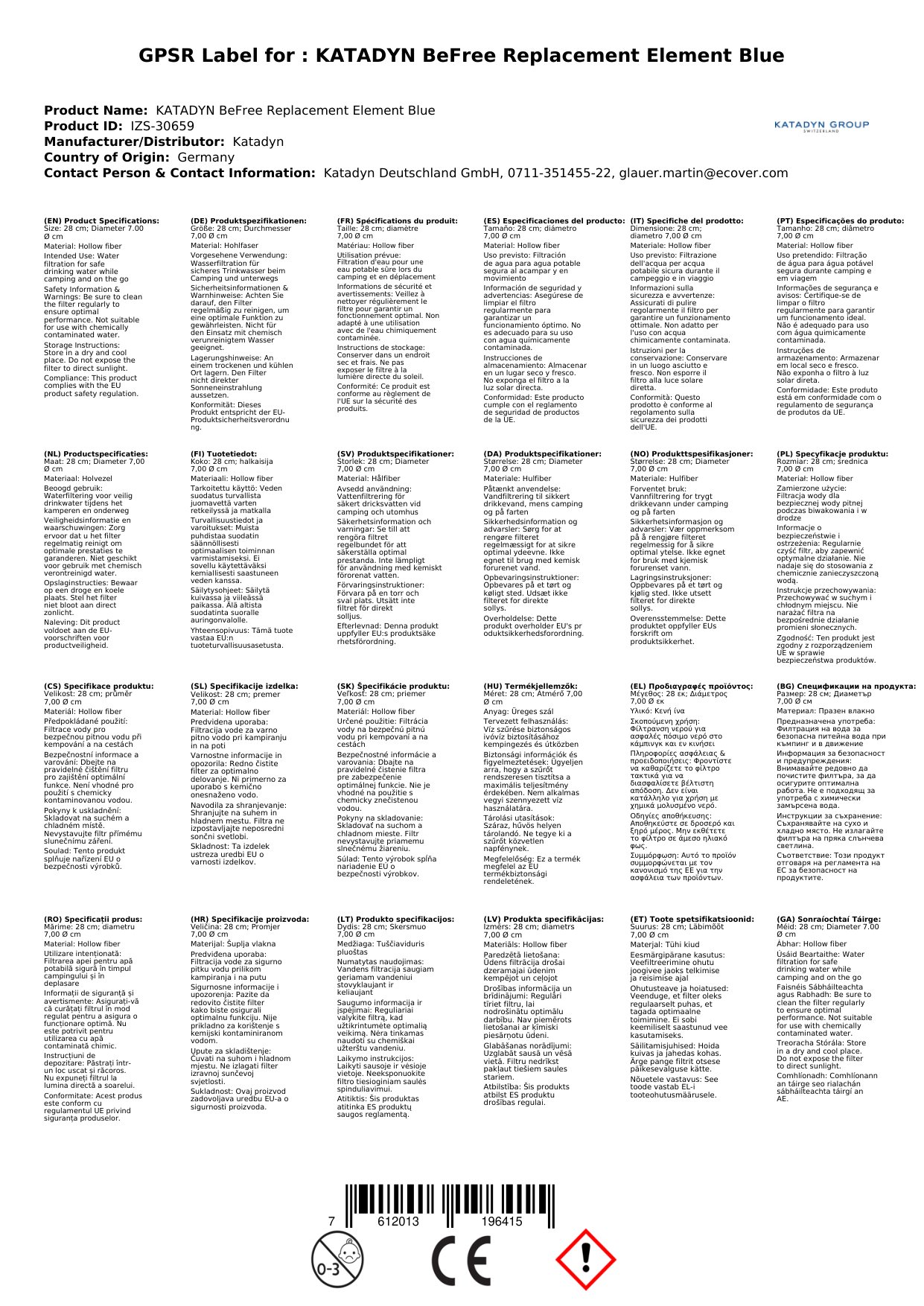 Tá an Eilimint Athsholáthair Katadyn BeFree deartha chun oibriú leis an Scagaire Uisce BeFree. Soláthraíonn sé scagadh uisce tapa agus éifeachtach. Baineadh úsáid as ábhair ardchaighdeáin chun marthanacht agus iontaofacht a chinntiú. Cuireann an eilimint scagaire seo uisce glan, sábháilte ar fáil duit, cibé áit ina bhfuil tú. Cuidíonn sé seo leat fanacht hiodráitithe le linn do ghníomhaíochtaí lasmuigh.