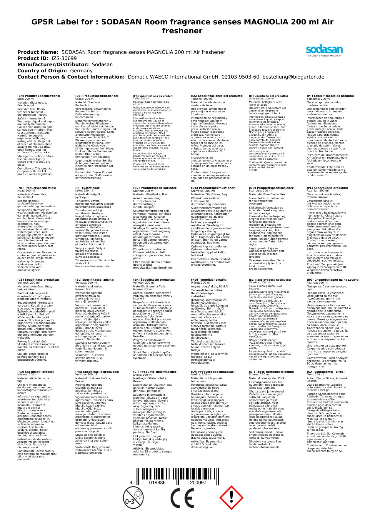 Cuir ceist chun níos mó a fhoghlaim faoin táirgeAthbheochan aeir, Cumhrán Seomra Magnolia, Boladh Seomra, 200ml Lufterfrischer