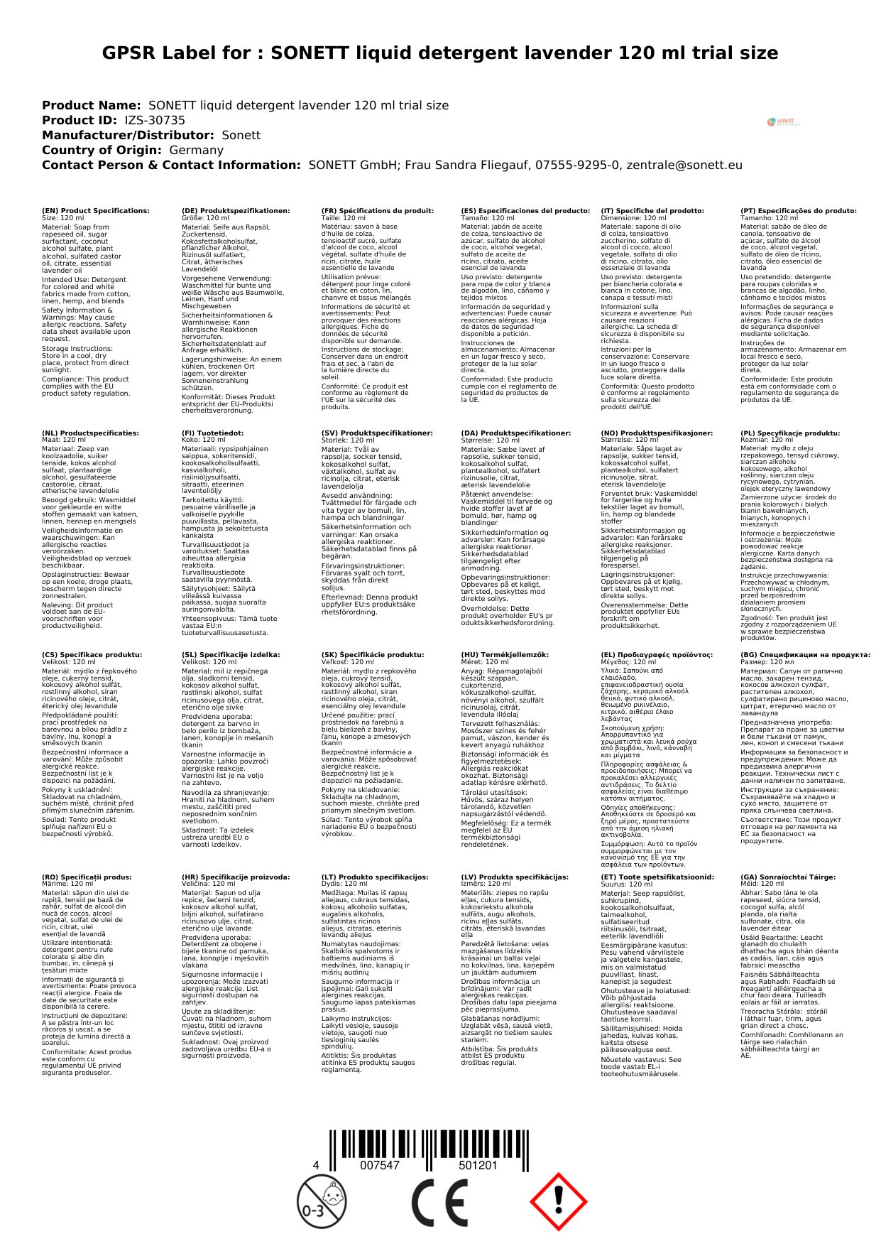 Cuireann ár ngallúnach níocháin orgánach réiteach glantacháin nádúrtha ar fáil do do chuid éadaí. Tá sé oiriúnach do gach cineál níocháin, lena n-áirítear éadaí íogair agus daite. Le boladh lavanda, fágann sé do chuid éadaí úr agus glan. Cén fáth go bhfuil sé seo tábhachtach duit: Gheobhaidh tú táirge glantacháin atá éifeachtach agus cairdiúil don chomhshaol.