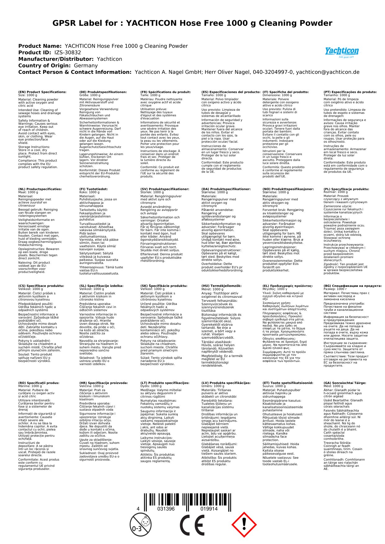- Coimeádán 1000g: Soláthraíonn an coimeádán mór go leor púdar le haghaidh ilúsáidí, ag cinntiú go bhfuil tú réidh i gcónaí chun píopaí agus drains a ghlanadh nuair is gá. Coinníonn sé seo do chuid córas pluiméireachta i riocht barr.