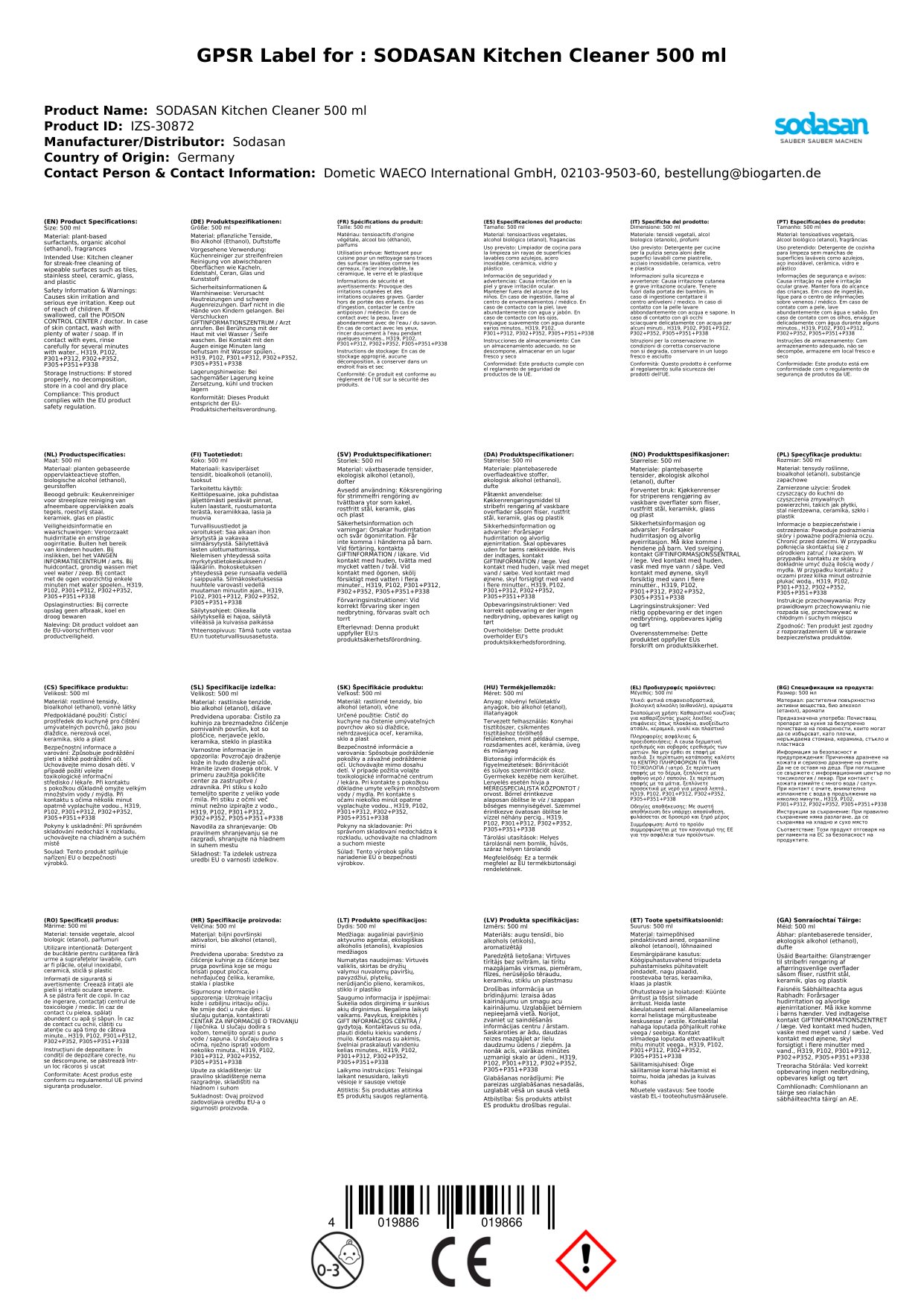 Tá ár nglantóir cistine nádúrtha bunaithe ar chomhábhair orgánacha amháin. Tá sé éifeachtach chun saille agus salachar a bhaint agus fágann sé boladh úr sa chistin. Tá an buidéal 500ml deartha le haghaidh úsáide fadtéarmaí. Cén fáth a bhfuil sé seo tábhachtach duit: is féidir leat a bheith cinnte go bhfuil tú ag baint úsáide as táirge sábháilte agus éifeachtach i do theaghlach.